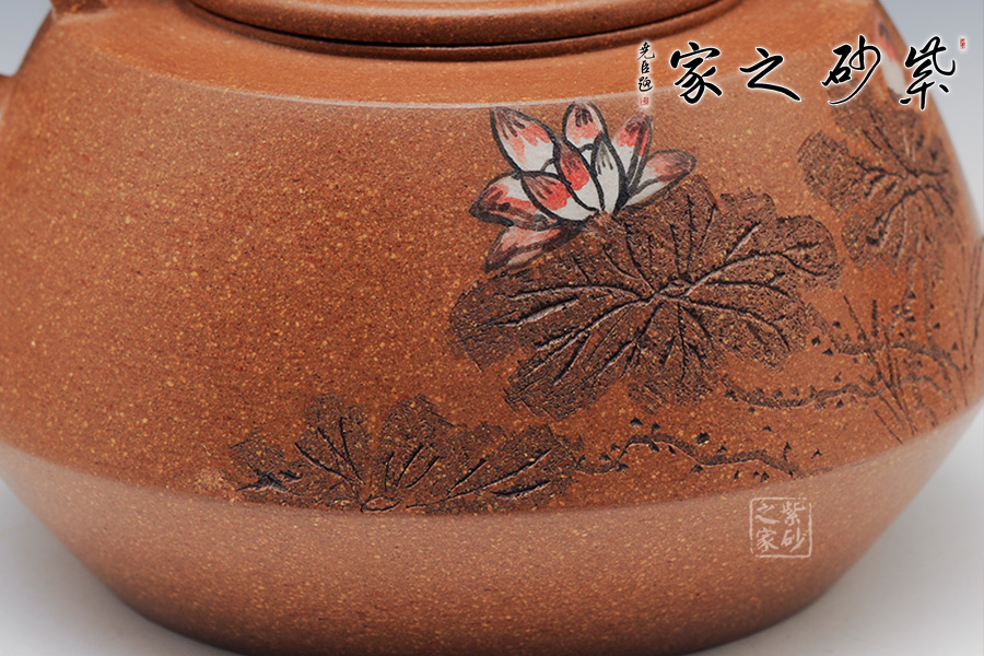泥性:原礦因含緞泥、紅泥、紫泥等諸多共生礦,陶之后,于深沉之“橙紅色”底上,滿佈五彩斑斕的粗細(xì)、深淺之紅、黃星斑點(diǎn)。