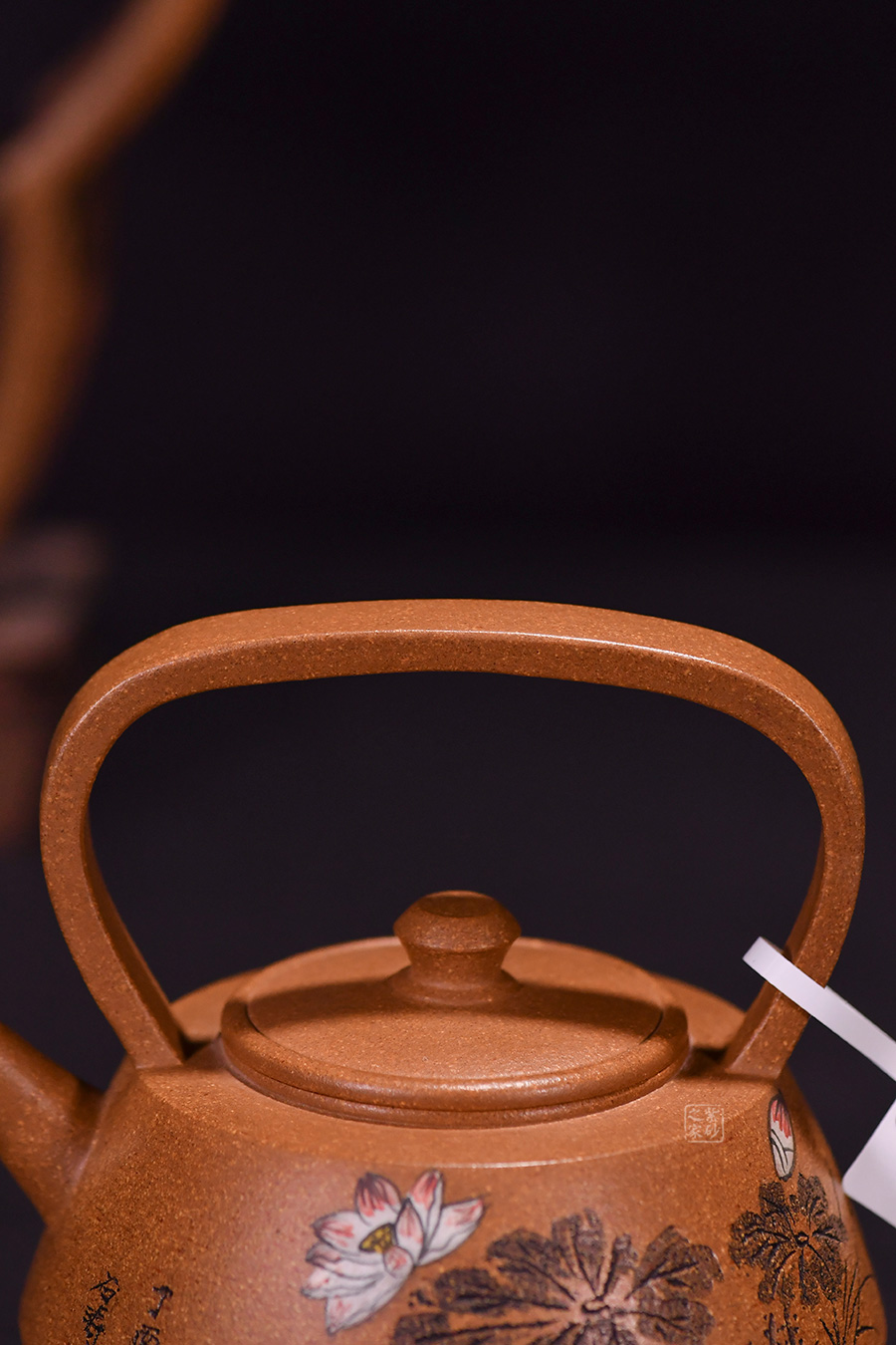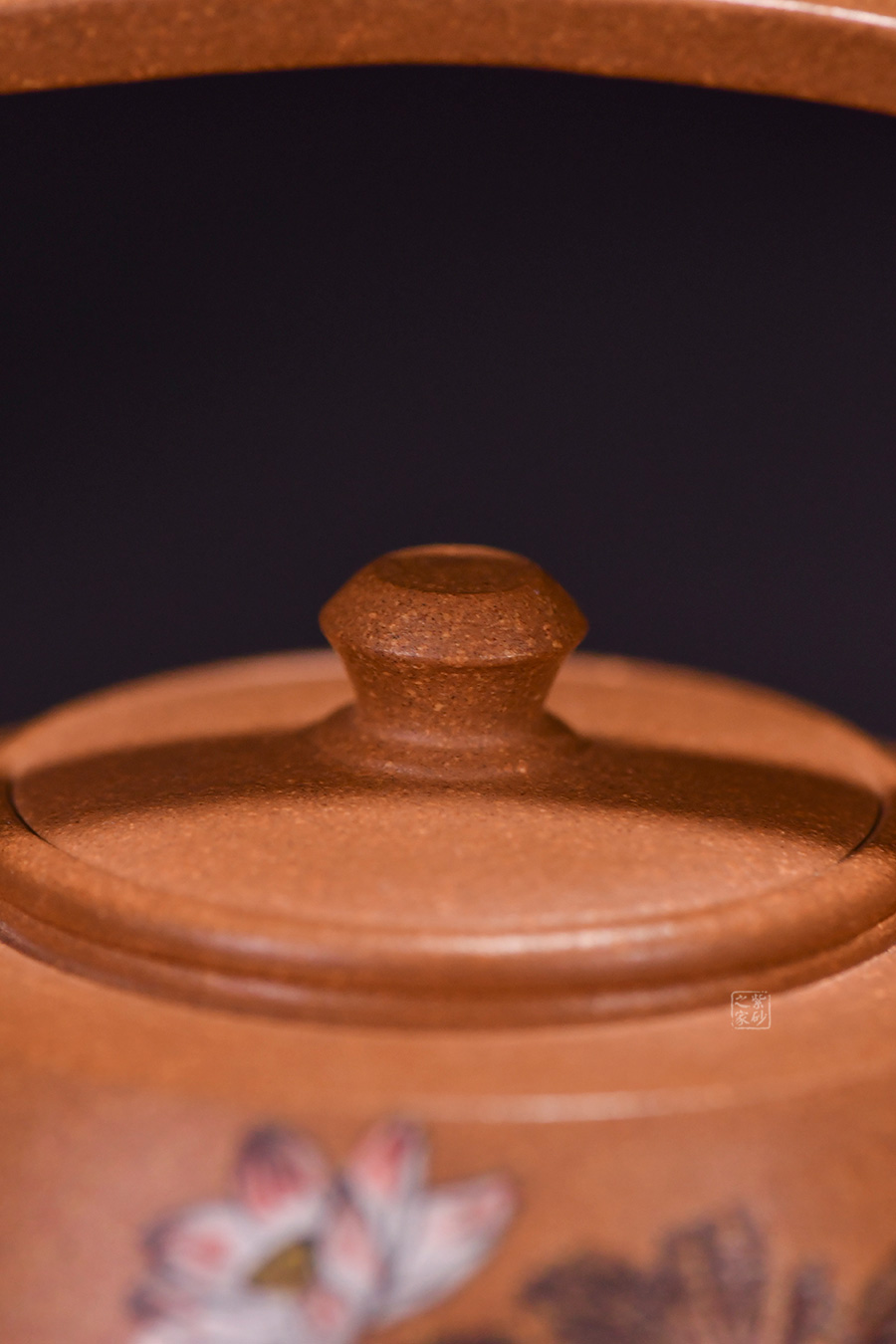 通體上下沉穩(wěn)而大氣,如同悠悠池塘中的荷蓮,寧靜祥和,悠遠(yuǎn)自然。壺體形制穩(wěn)健,線條流暢。直流,壓蓋協(xié)調(diào)而雅致,素雅的壺身將紫砂壺典雅古樸的氣質(zhì)巧妙體現(xiàn),壺底蓮臺,襯托氣韻。提梁把拿捏適手,提升整體的空間美感。整體做工精細(xì),實(shí)用價(jià)值高,韻味悠長。