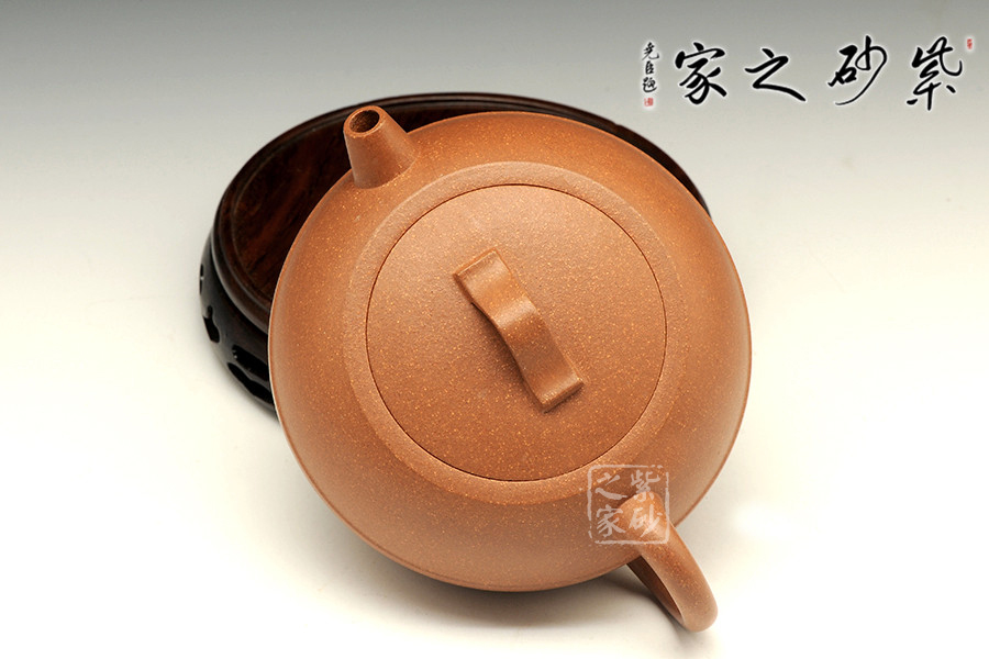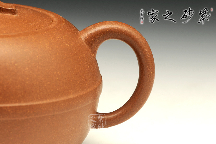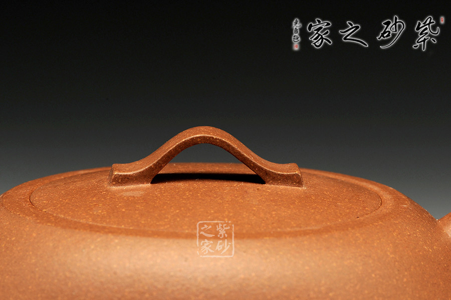 此壺線條飽滿富有張力,古樸穩(wěn)重,色澤醇厚,富有質(zhì)感,壺蓋壓口絲嚴(yán)密縫,中間微微隆起,中間一條帶環(huán)穿過,一條勻稱的玉帶,整款壺毫無矯飾,線條自然銜接搭配,捧壺在手,美而不失老味,尤其是古韻。