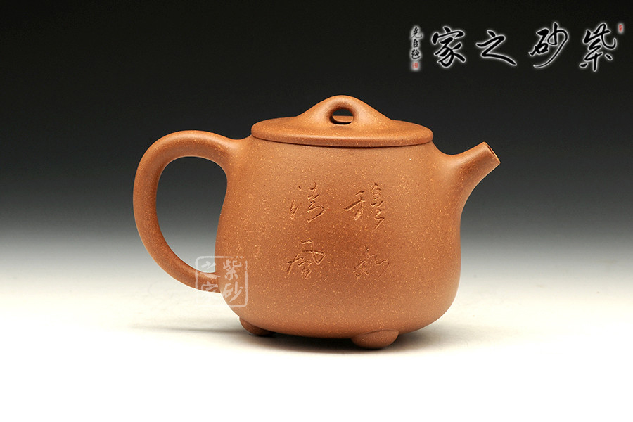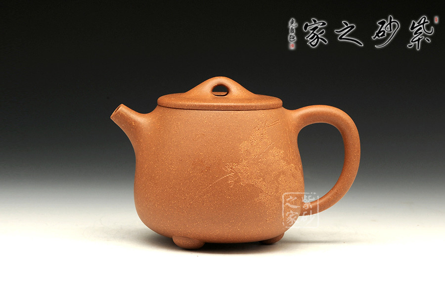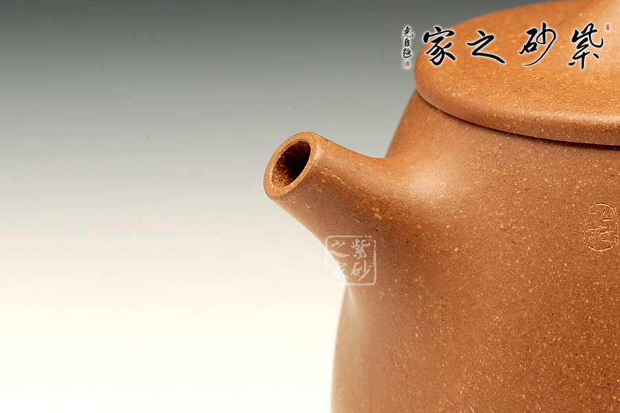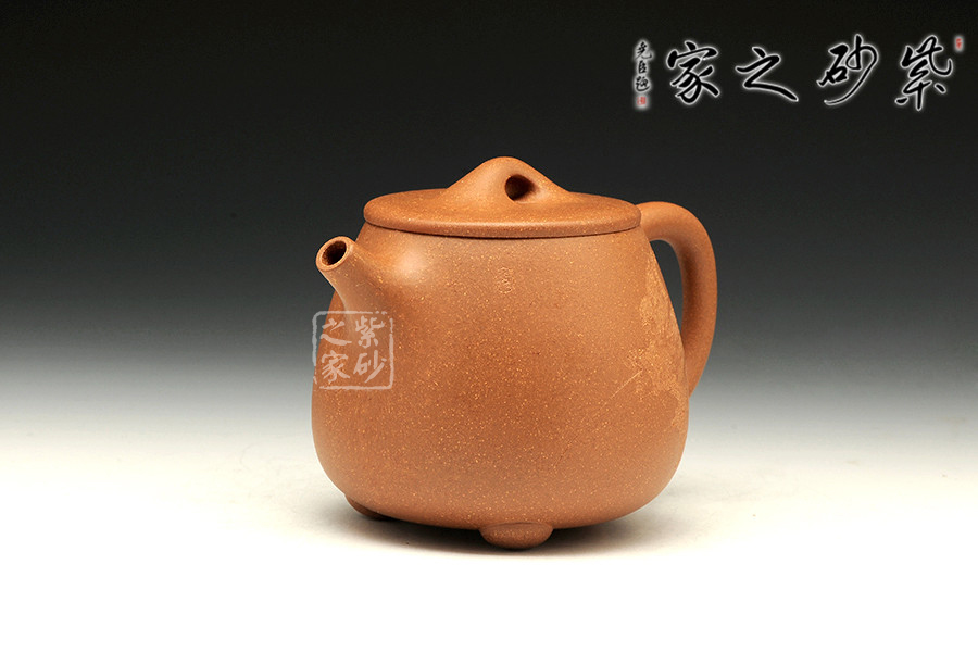 雖是平蓋,但實(shí)質(zhì)上中高周低,中間和邊沿有一毫米的差距;蓋板線(xiàn)厚薄正好。蓋上的橋梁的(鈕)是最關(guān)鍵之處,高矮跨度都符合比例,變化較大。 壺嘴稱(chēng)為直筒暗嘴。長(zhǎng)短、粗細(xì)的比例恰當(dāng),自然,不能相差絲毫。從嘴頭至壺身,逐漸加粗,就像是從壺體上生出來(lái)似的。壺底部三足稱(chēng)圍棋足,形如圍棋子。三足位置呈等邊三角形,勻稱(chēng)不偏,使整體統(tǒng)一,顯示出壺的神韻齊全,風(fēng)度大氣,實(shí)用大方。