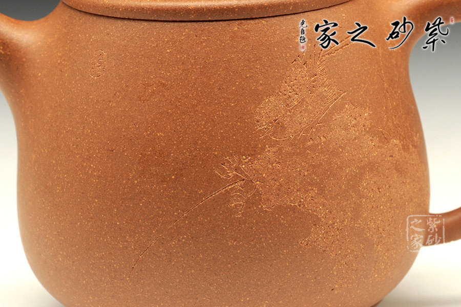 特點(diǎn):原礦因含緞泥、紅泥、紫泥等諸多共生礦,陶之后,于深沉之“橙紅色”底上,滿(mǎn)佈五彩斑斕的粗細(xì)、深淺之紅、黃星斑點(diǎn)。