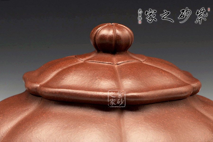 此作品壺身飽滿,如綻放葵花,花朵片片分明,面面等分,筋紋紋路凹凸力度適中,敲到好處的裝飾了整個(gè)壺型。筋紋紋路從壺蓋一直延伸到壺體,宛若渾然一體,更增加了整體感。壺嘴、壺把和壺鈕處也有脈絡(luò)裝飾,細(xì)節(jié)照顧周到,可見工藝師的用心。