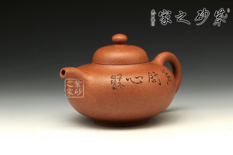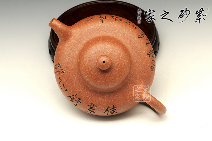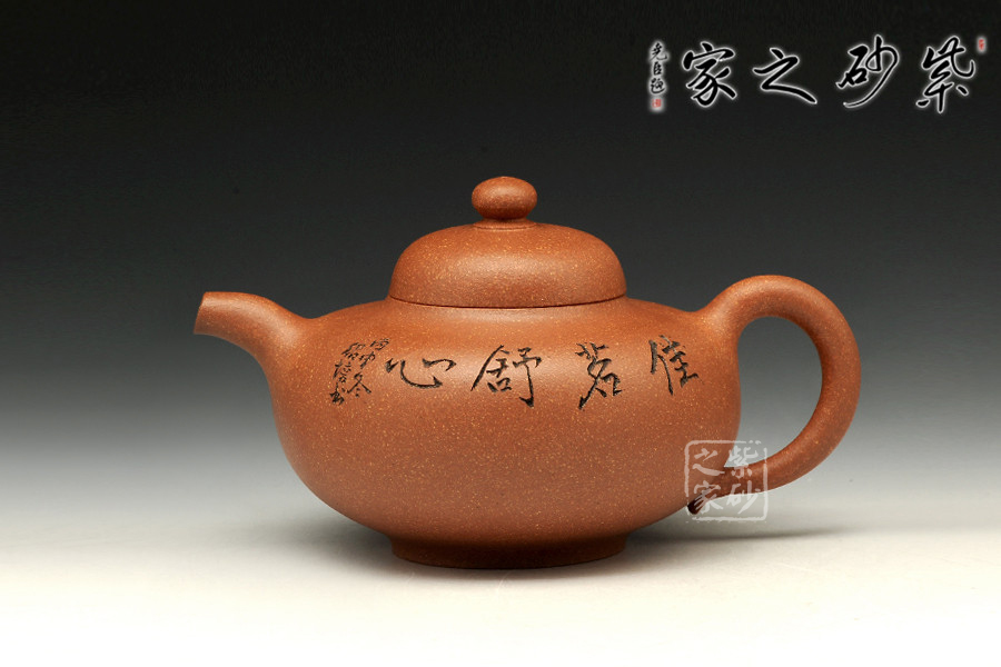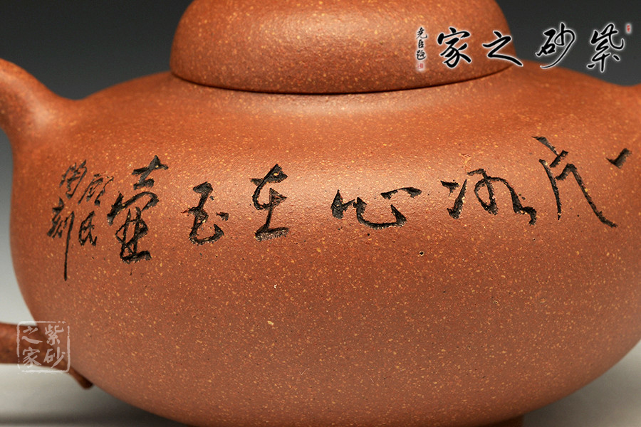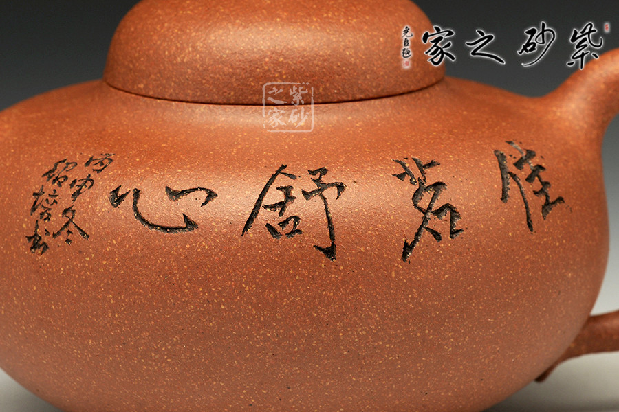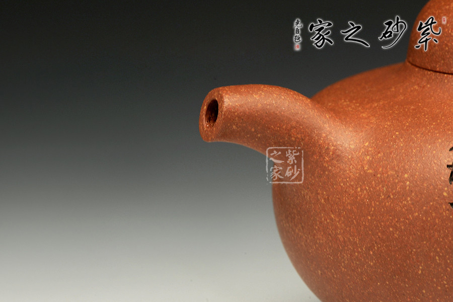 此壺采用刻繪裝飾工藝,刻字蒼勁古樸,雅韻十足。一彎流壺嘴,圓潤可愛,出水爽利。耳形端把,渾然大氣,渾厚自然。和壺嘴相對應(yīng)。此壺是實用和收藏的珍品,不可錯過。