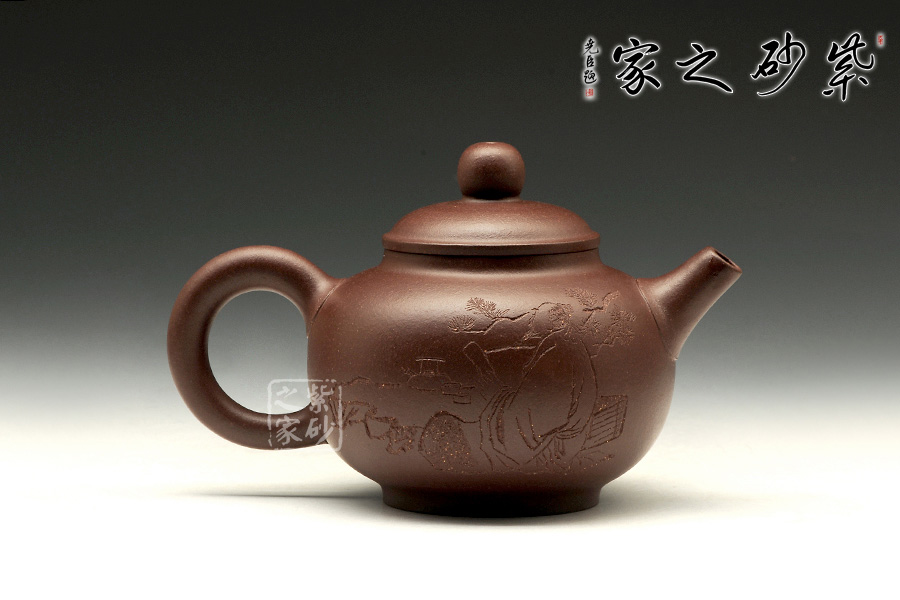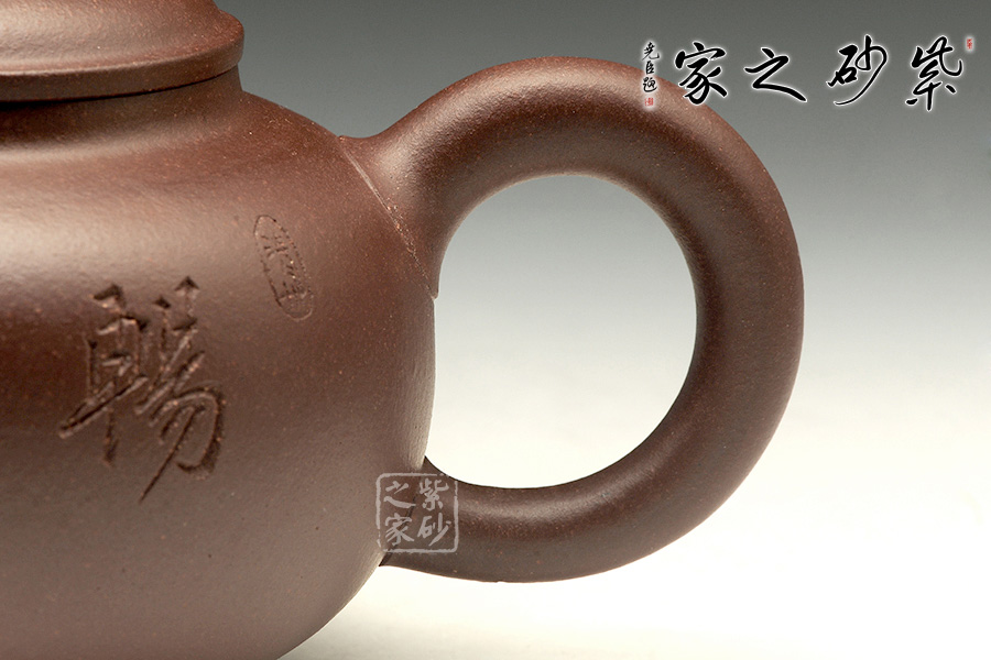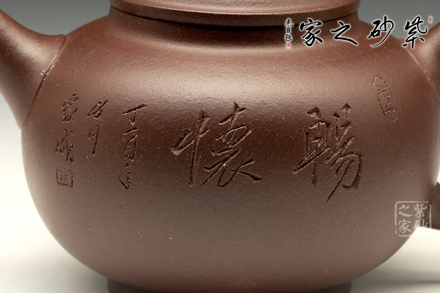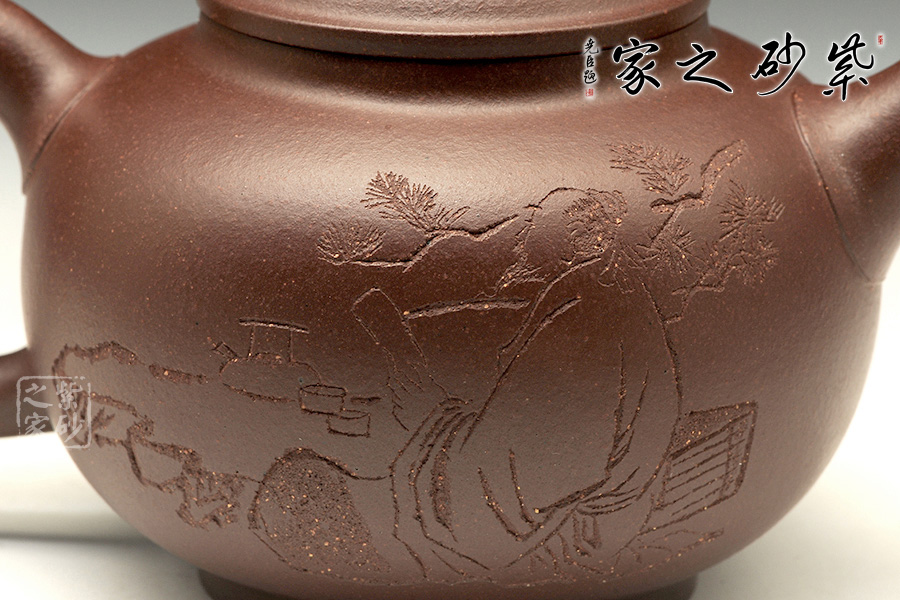 與國家級大師譚泉海、徐安碧多年合作。所制紫砂壺壺嘴內(nèi)部均有其親筆簽名。擅長制作圓器, 作品簡約而老練、精工華麗,耐人尋味,深得海內(nèi)外同道及紫砂壺收藏家的愛戴及青睞。該壺色澤溫和,樸靜幽遠。整器線型流暢,蓋與口互相吻合,分毫不差。壺身正面刻有“暢懷”兩字,壺身背面為一位文人讀書品茶,盡顯閑情雅致。