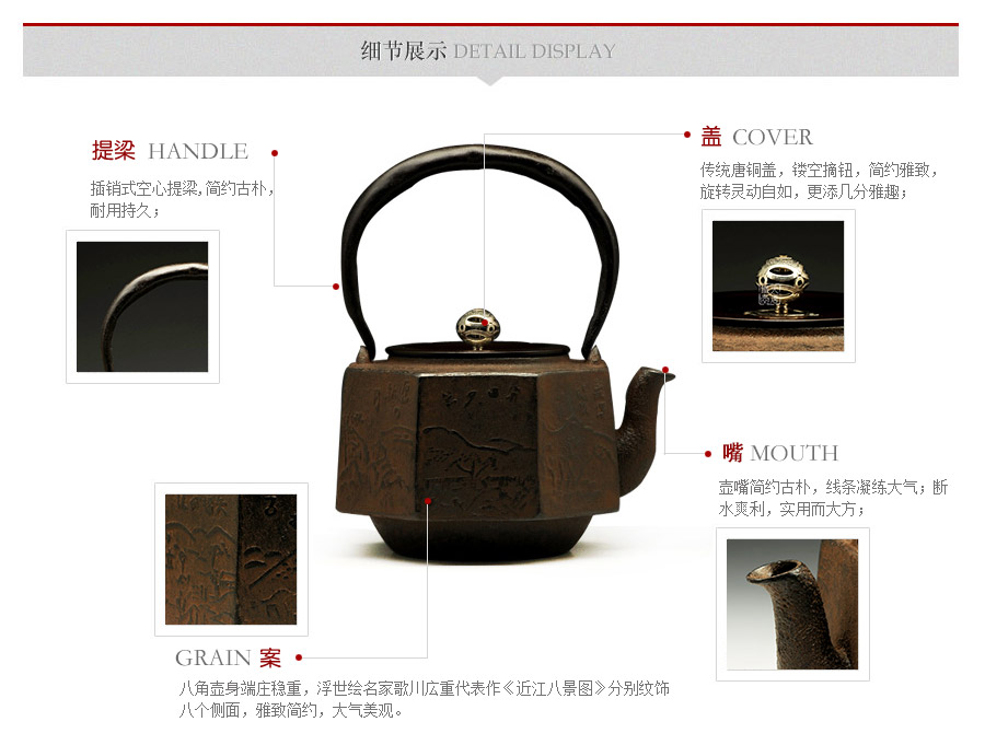 平安松壽堂作品,純手工制作,八角尾垂形,八角壺身端莊穩(wěn)重,浮世繪名家歌川広重代表作《近江八景圖》分別紋飾八個側面,雅致簡約,大氣美觀。