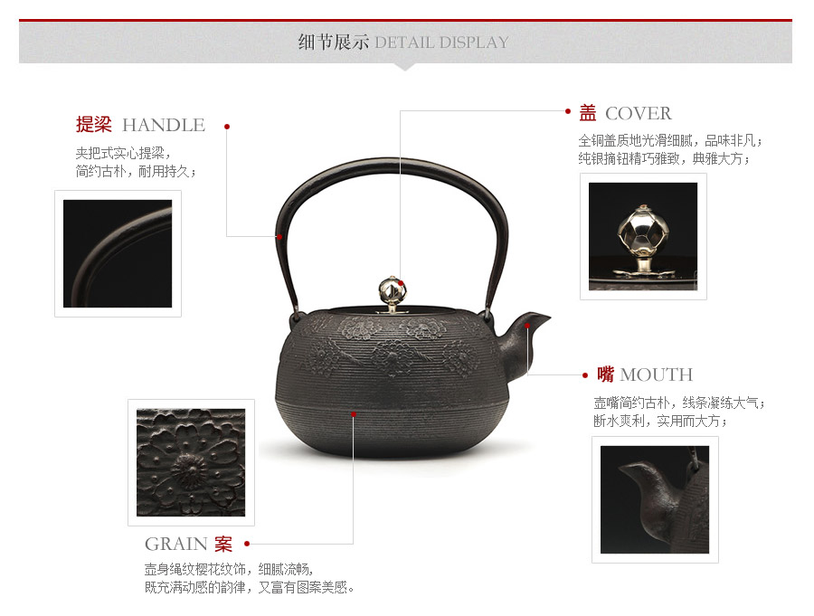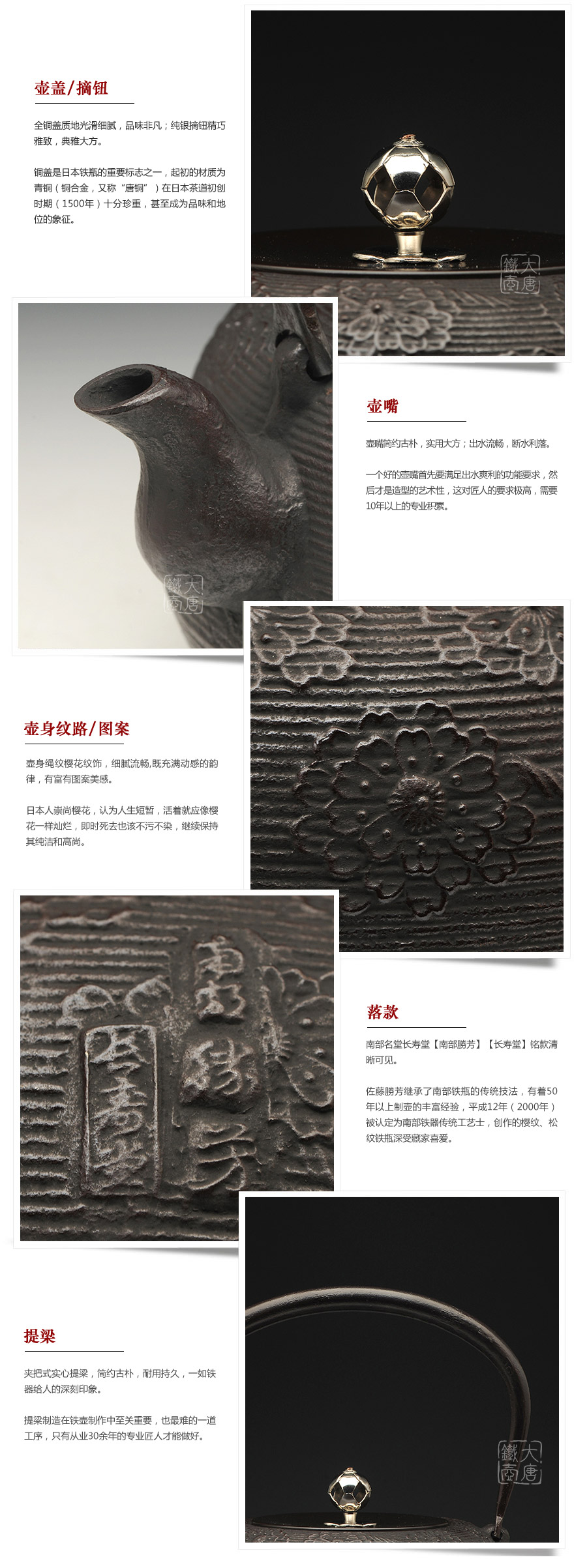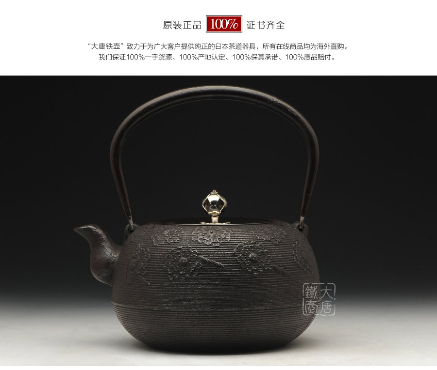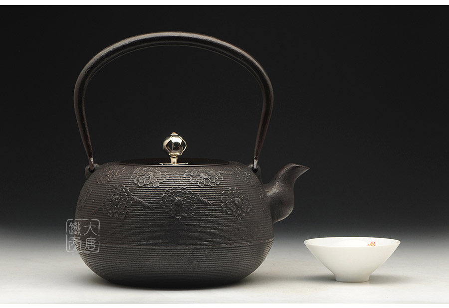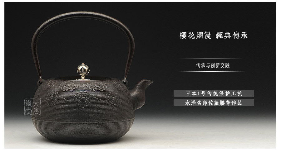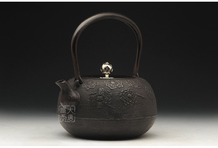 南部水澤名師佐藤勝芳作品,傳統(tǒng)手工工藝,經(jīng)典櫻花紋飾,夾把式實(shí)心提梁,整器簡(jiǎn)約大方,美觀實(shí)用。