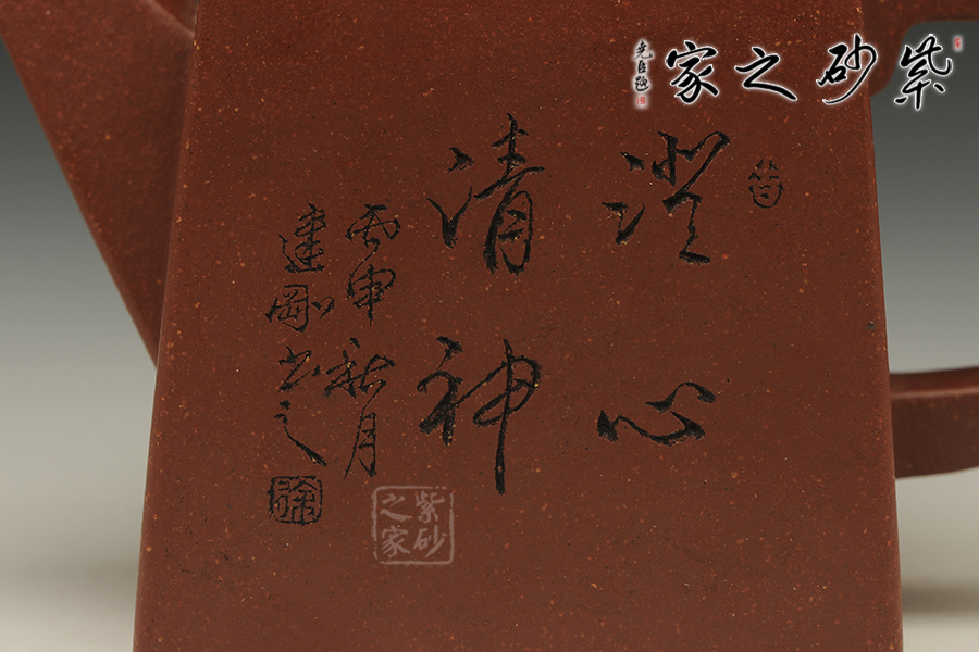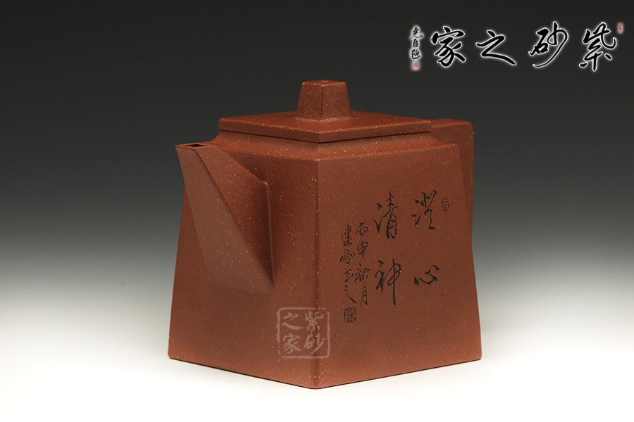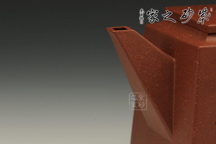 “寧做十圓,不做一方”,由此可見方器成型難度之大,越是有難度的東西越越有人挑戰(zhàn)。老師此款四方壺形體優(yōu)美,工藝嚴(yán)謹(jǐn),氣韻生動,造型古樸。整體壺形透露出豪爽、剛勁、正直的陽剛之氣;比例準(zhǔn)確,口蓋緊密平整,塊面挺括,線條利落,氣勢挺拔,力度到位。