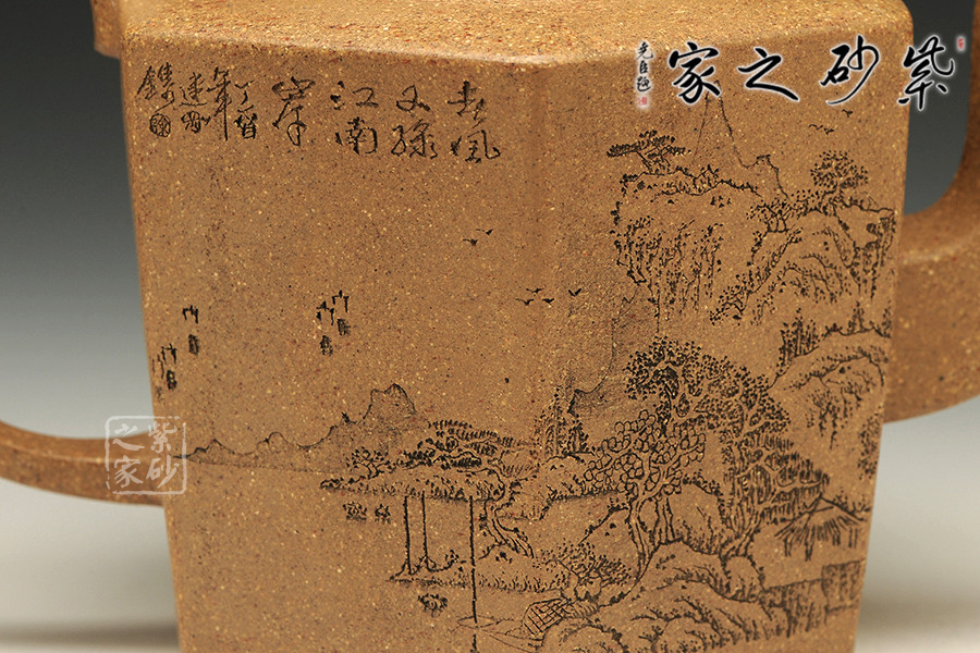 通體裝飾: 裝飾: 山水 裝飾者:徐建剛 裝飾內容: 春風又綠江南岸,一幅秀美的江南風景圖