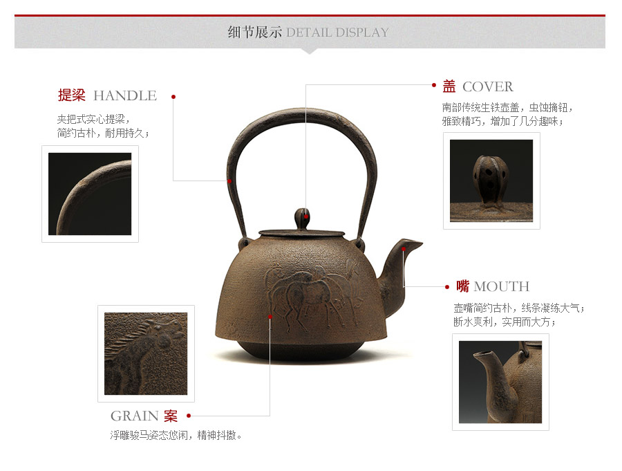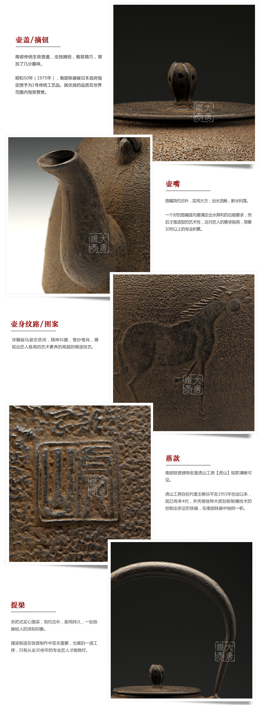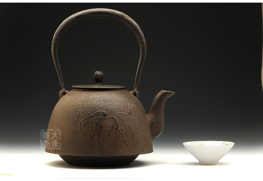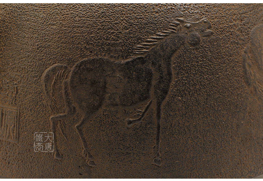 虎山工房匠心之作,一模一具,純手工砂鑄成型。浮雕駿馬姿態(tài)悠閑,精神抖擻,惟妙惟肖,展現(xiàn)出匠人極高的藝術(shù)素養(yǎng)的高超的鑄造技藝。
