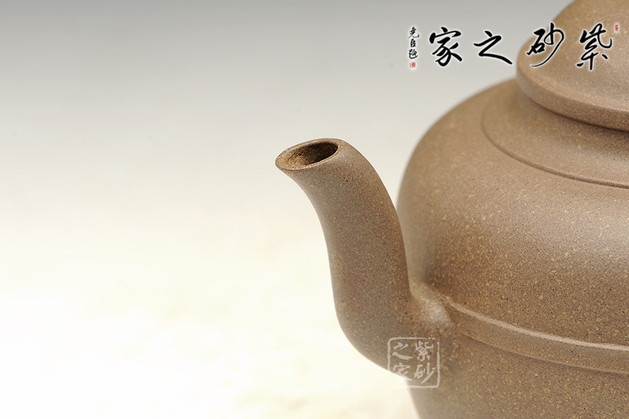 此壺造型簡(jiǎn)潔,以其簡(jiǎn)練的線條構(gòu)成渾厚的藝術(shù)空間,深厚而有神韻。壺體敦實(shí)圓厚,輪廓清晰,壺身飽滿,耳把有動(dòng)感。彎流修長(zhǎng),蜿蜒曲折,與壺身明接相連,子母線嚴(yán)絲密縫。是一件實(shí)用性與把玩性皆佳的好壺,值得推薦!
