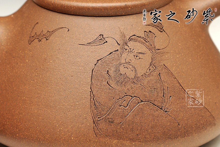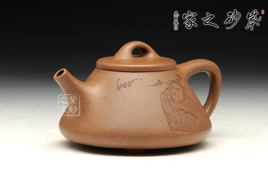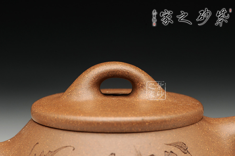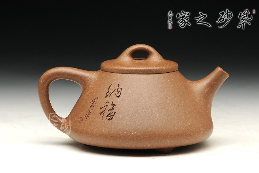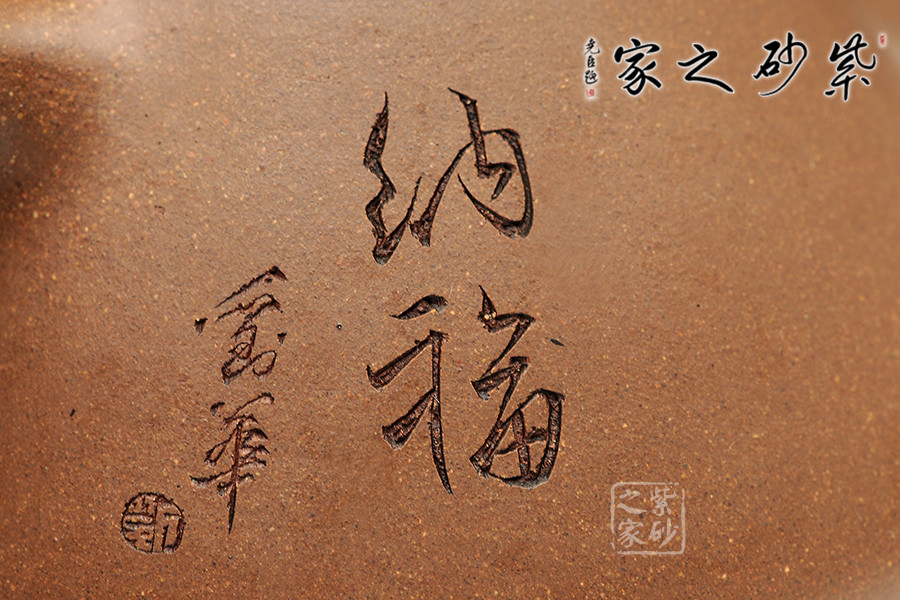 B面: 裝飾: 名言警句 裝飾者:劉華 裝飾內(nèi)容: 納福整款器型非常到位,石瓢挺俊之美表達(dá)得盡善盡美、淋漓盡致。橋鈕看起來肥大然而提捏之處細(xì)膩,拿捏方便,鈕孔形成一個(gè)飽滿規(guī)整的扁圓,足見做工精細(xì)。平蓋壓口,從蓋沿線可以看出壺蓋質(zhì)薄而形堅(jiān),且略大于壺口,形成完整的鎖口之勢,氣密性極佳。口蓋略大但不覺過分寬闊,壺腹飽滿敦厚,顯示出渾厚的內(nèi)蘊(yùn)。直流嘴略微呈錐形,嘴口看似喇叭狀,出水爽利,流勢酣暢淋漓,趣味性十足。