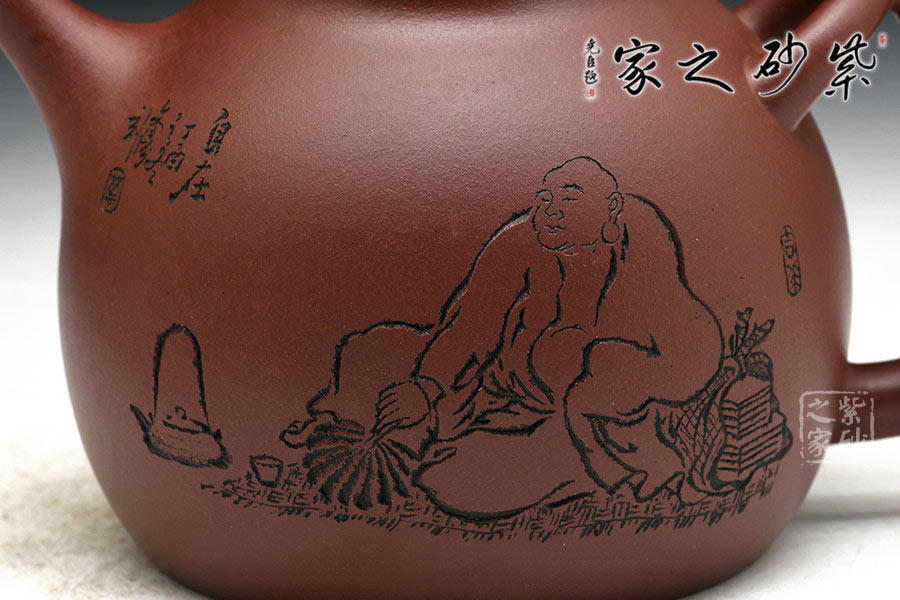實(shí)力派陶藝師范偉文,有30年制壺功底,技藝扎實(shí),所制作品性價(jià)比高。優(yōu)質(zhì)底槽青泥料手制,成色穩(wěn)重,愈顯珍貴。此作為原創(chuàng)之器,器型雍容大氣,飽滿有力。壺身似大肚飽滿,意為能容能下之事,寬和以待;壺把設(shè)計(jì)巧妙,似為人形,表示為人者,需寬容大度。直流壺嘴精悍有沖勁;牛蓋設(shè)計(jì)奪人眼球。壺身刻以高僧像,與壺主題貼切,品茗事茶,與禪事結(jié)緣。