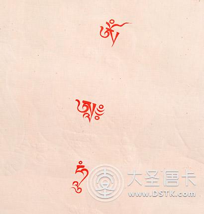 唐卡畫完后開光時,高僧大德一般在唐卡背面佛像,口意種子字"嗡阿吽",以顯現(xiàn)其加持之力。"嗡阿吽"三種子字是三世諸佛的心髓,也是一切佛菩薩身語意的根本種子字。