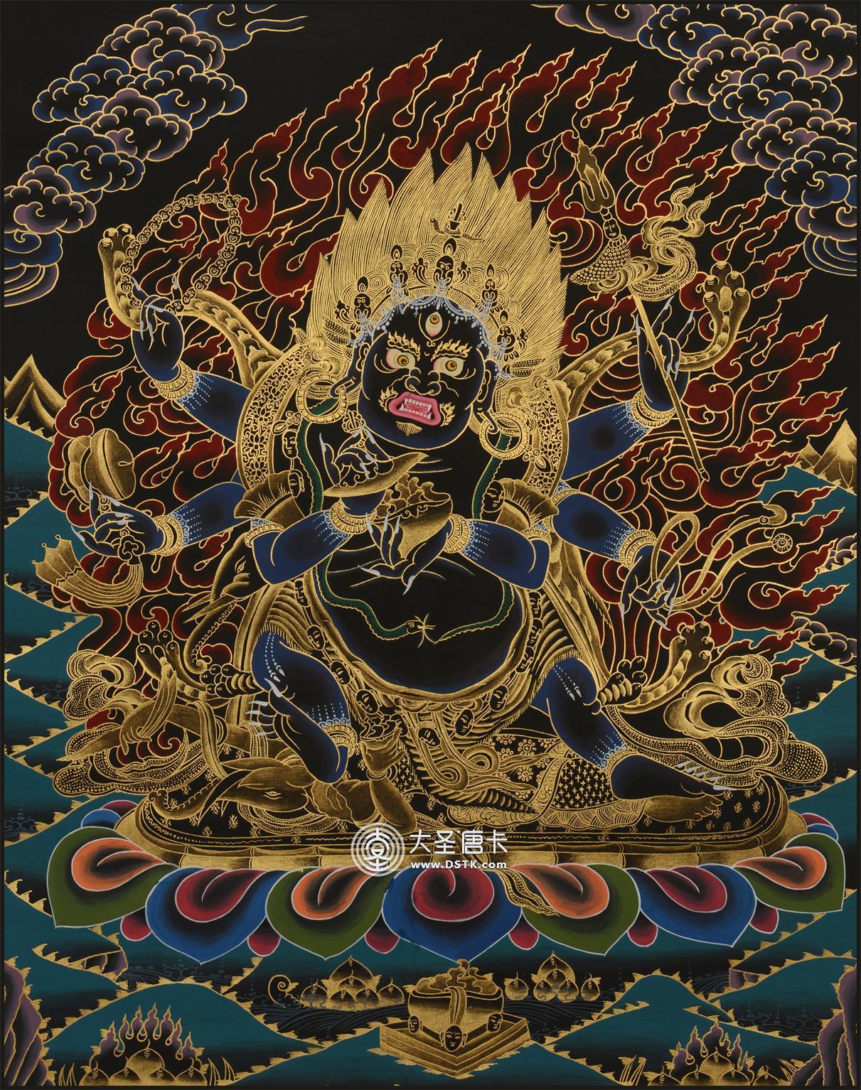 大黑天又意譯為大黑、大時、大黑神或大黑天神等,或者直接音譯為摩訶迦羅、莫訶哥羅、瑪哈嘎拉等名稱。該神本是婆羅門教濕婆的變身,后為佛教吸收而成為佛教的護法,特別是在密宗中大黑天是重要的護法神。