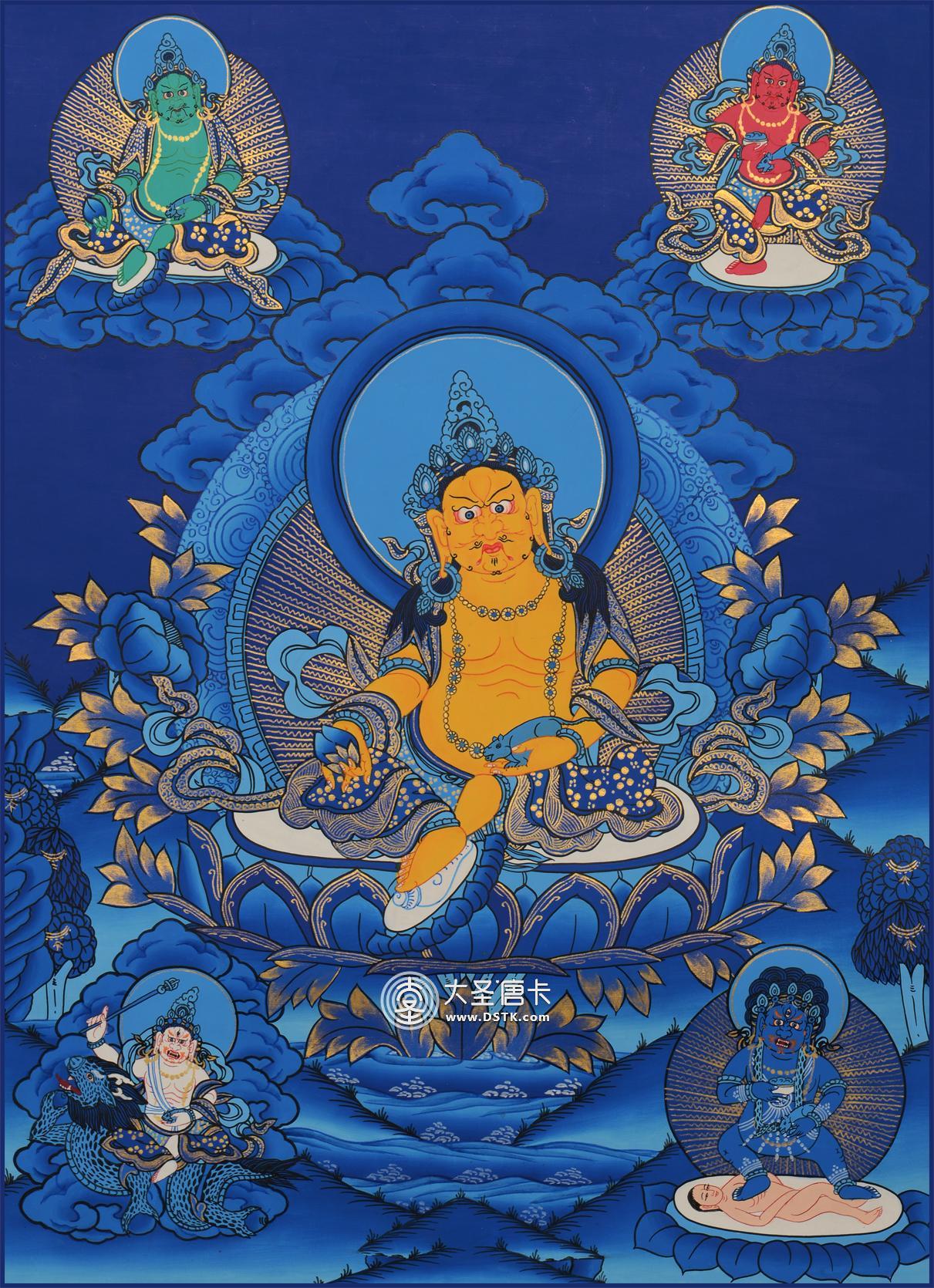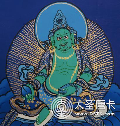 綠財神受釋迦牟尼囑托,為一切貧苦大眾轉法輪,賜予世財、法財,居于五姓財神的中央,是由無上瑜迦部的不二續“時輪金剛本續”所傳出的,為東方不動佛所現的應化身。