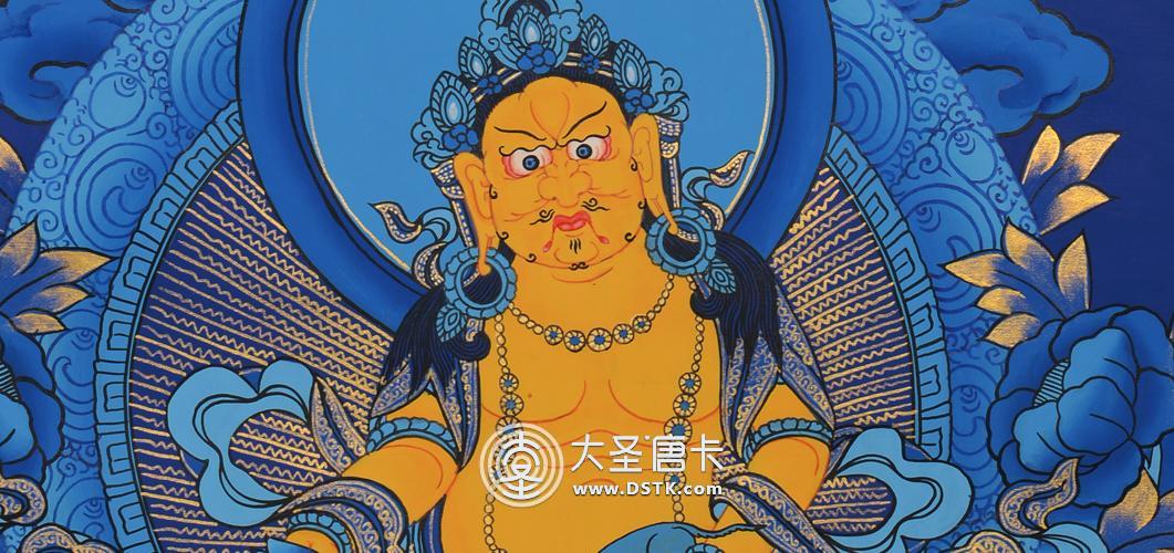 黃財神名為:藏巴拉些玻,主司財富,能使一切眾生脫離貧困,財源廣進。當初釋迦牟尼佛在靈鷲山宣說大般若經時,諸魔鬼神等皆前來障礙,令高山崩塌,大眾驚恐,此時黃財神就現身庇護,后來為世尊囑咐黃財神,當于未來世助益一切貧困眾生,為大護法。
