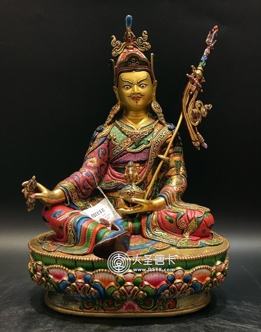 產地:尼泊爾佛像 工藝:彩繪 創作年份:2017 題材:祖師 繪制時間:0日 尺寸:19*38*25cm 重量:0 g 材質:紫銅 使用場地: