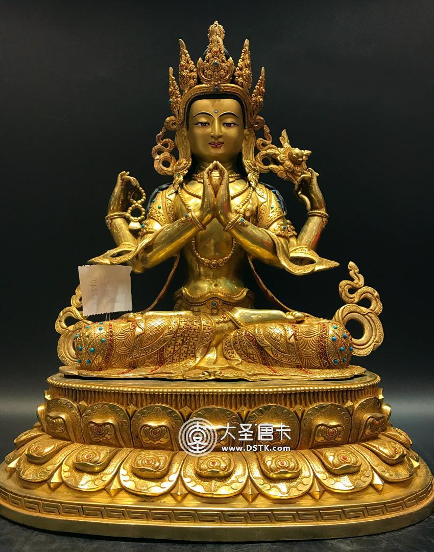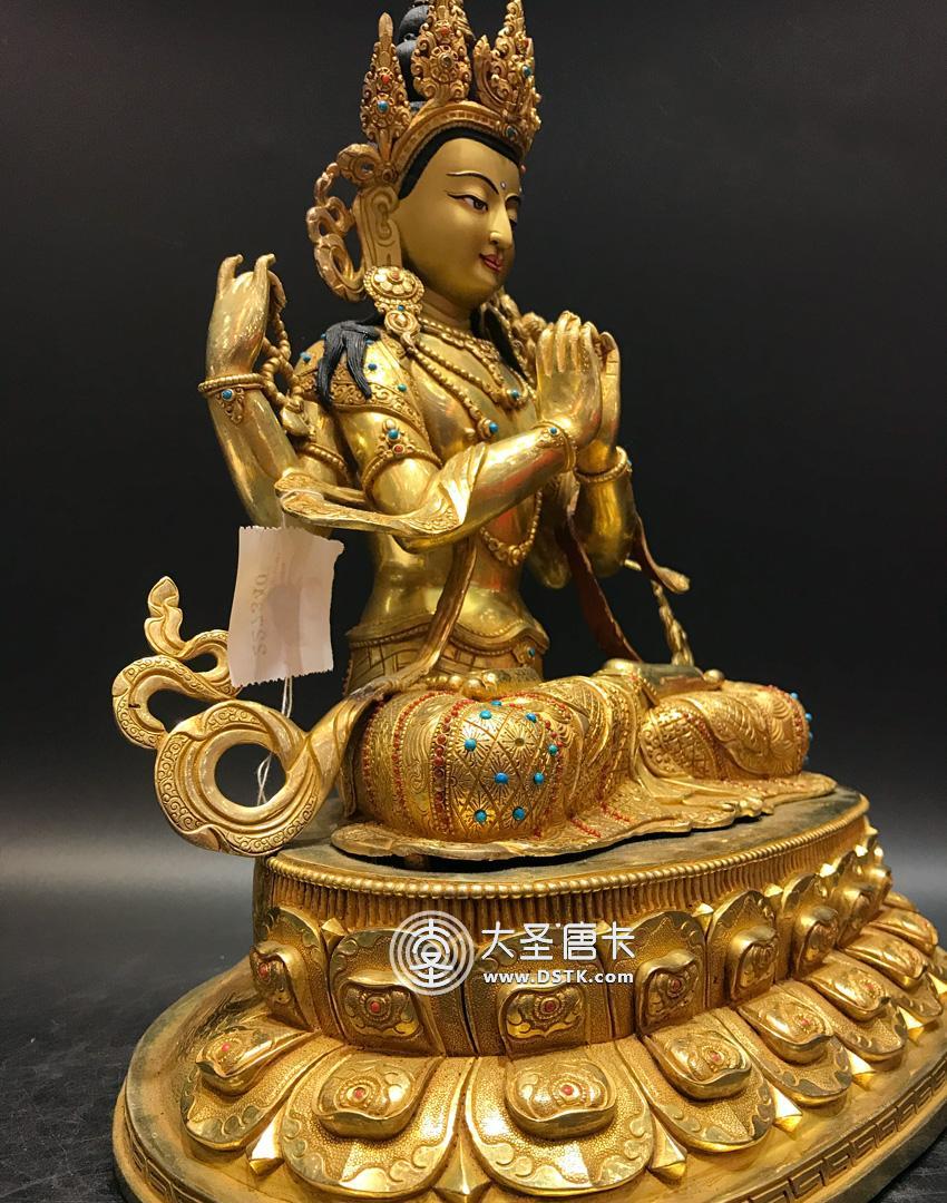 四臂觀音鎏金一尺半