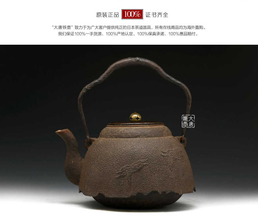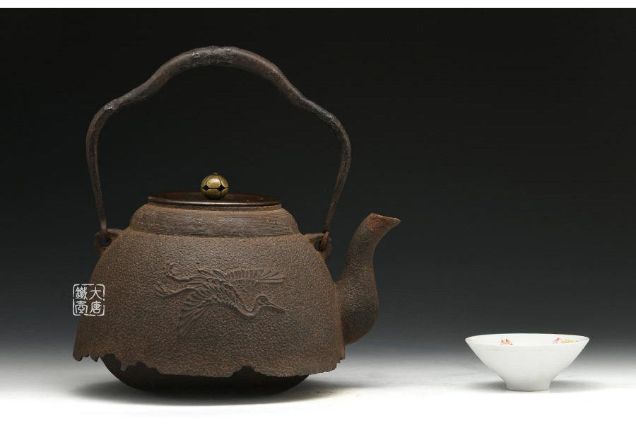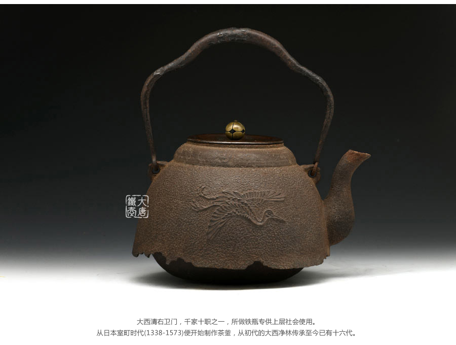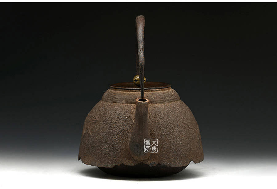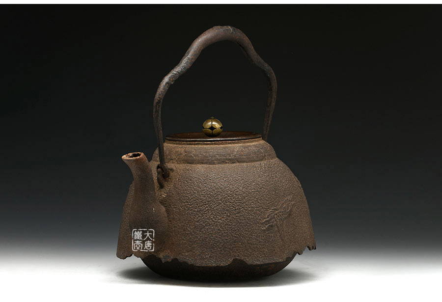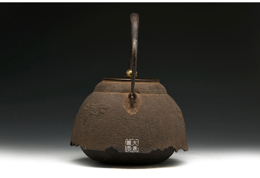 十代大西凈雪作 尾垂仙鶴地紋老鐵壺 [ 編號(hào):63476 ]