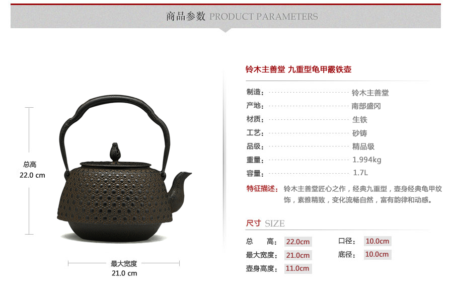 鈴木主善堂匠心之作,經(jīng)典九重型,壺身經(jīng)典龜甲紋飾,素雅精致,變化流暢自然,富有韻律和動(dòng)感。