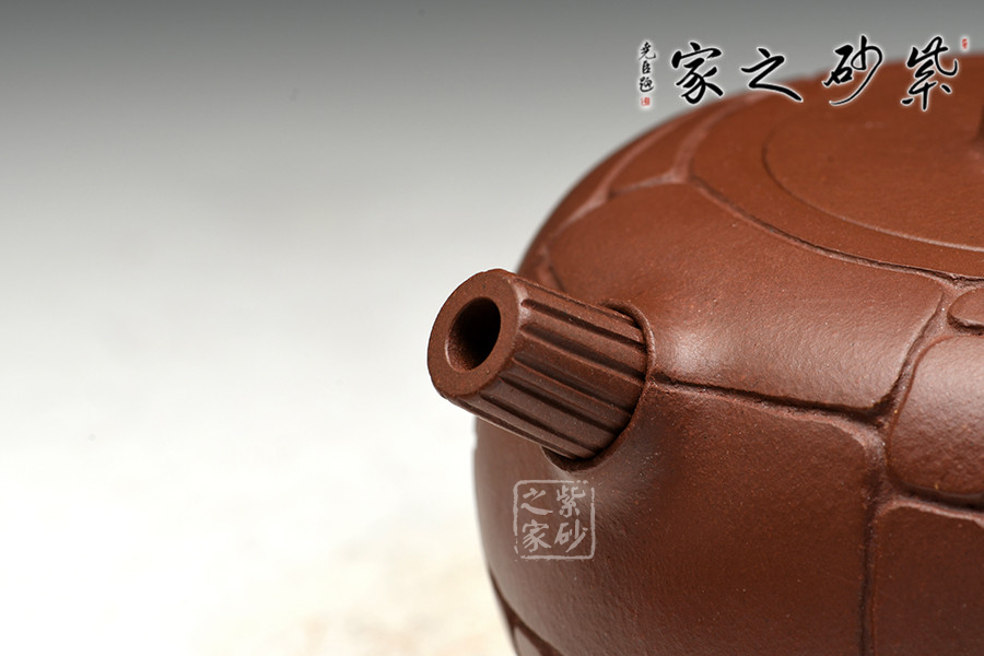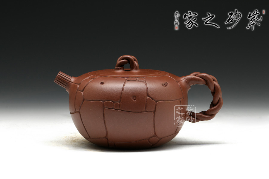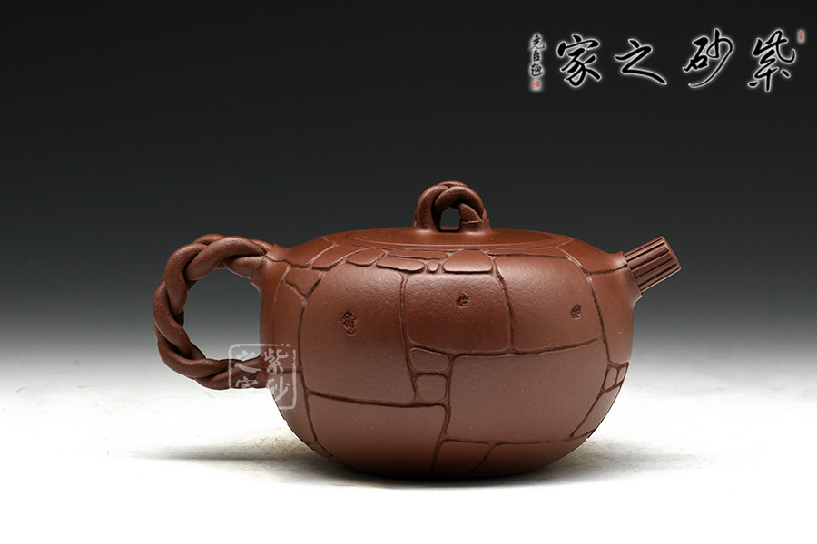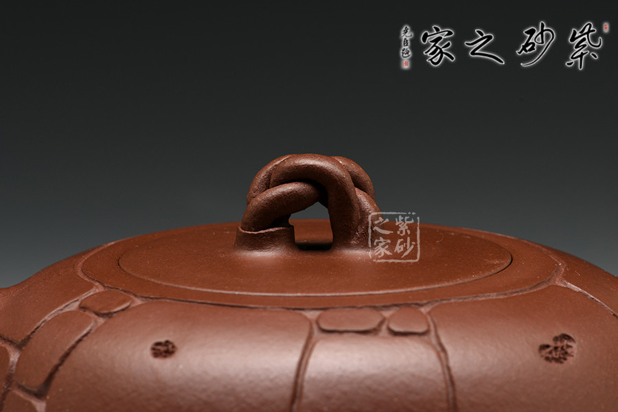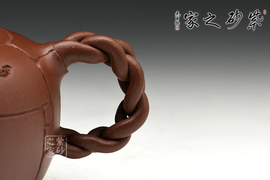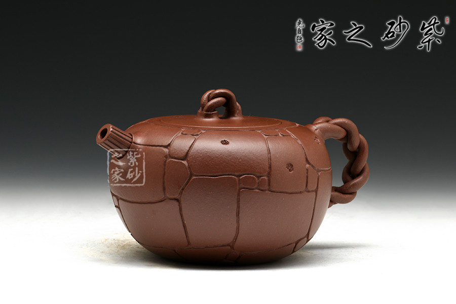 新時代紫砂創意者楊笛,紫砂界中青輩實力陶手,師從中國工藝美術大師吳鳴,作品均為全手工制成,拍賣成交價近5萬,是一位收藏潛力巨大的年輕陶藝家。該作為作者原創之作,色澤古樸,質感特殊,壺身形成素而穩健的風格,耐人尋味。壺身飽滿圓潤,線條流暢自如,做工精致,壺身采用冰紋開片手法演繹,難度極大,市面罕見,壺身均碎裂呈玻璃狀,形狀獨特,堪稱精妙。嘴、鈕則以似瓜藤般交結糾纏,自然和諧,藤之意躍出。整款壺以直線與直面見長,流暢灑脫,毫無拘束,給人以清爽自然之感。