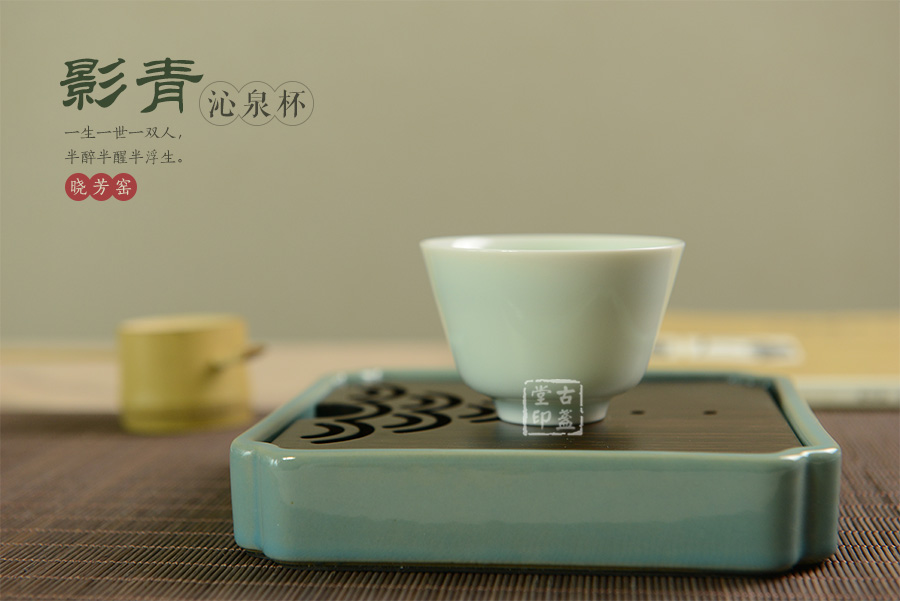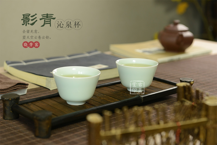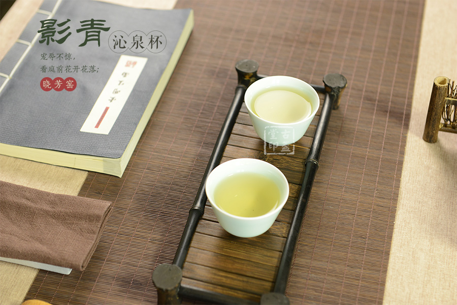 影青瓷是北宋中期景德鎮所獨創,其釉色青白淡雅,釉面明澈麗潔,胎質堅致膩白,色澤溫潤如玉,所以歷史上有“假玉器”之稱。曉芳窯一直以仿古瓷出名,此對影青沁泉杯釉色純正,器形規整,大小合適。瑩潤的釉色讓人一眼看上去就愛不釋手。一價雙盞,經濟實惠,不管是自用還是送人皆宜。