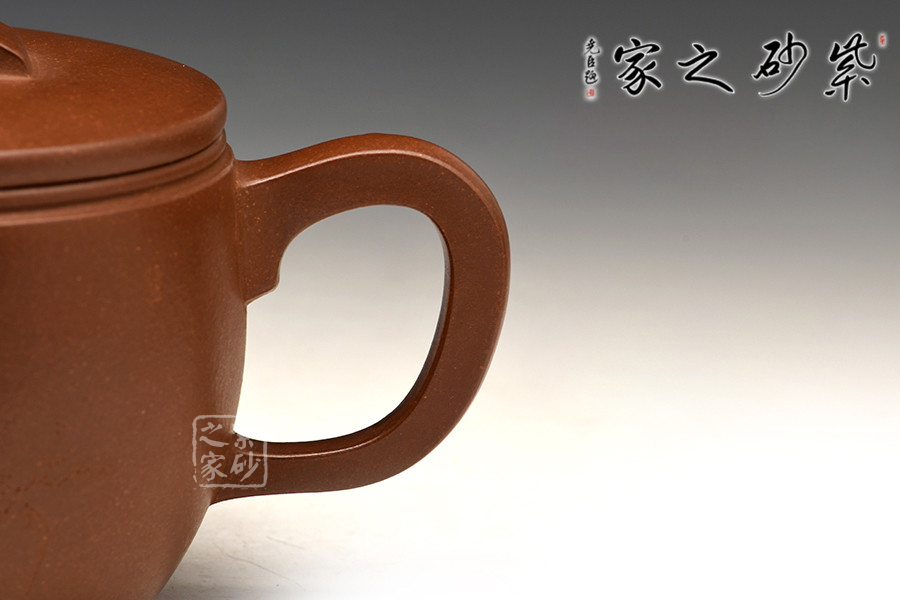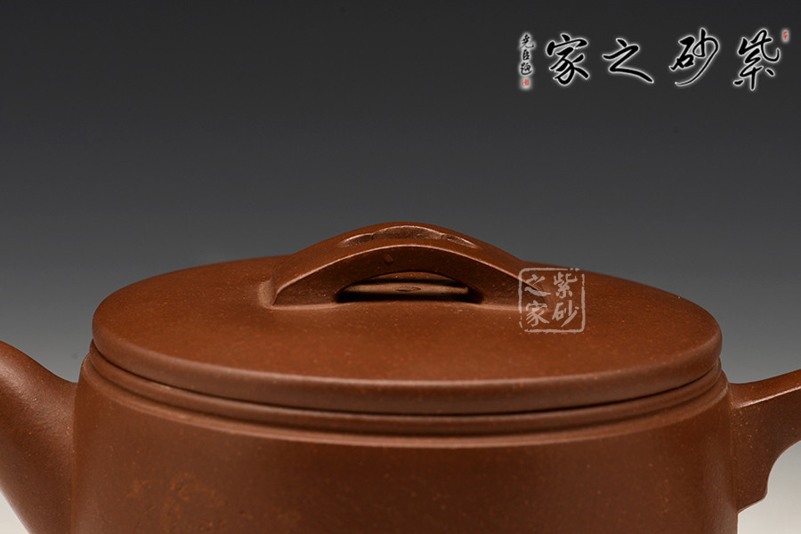 簡練的器型,明快的線條,漢瓦是廣大壺友非常喜歡的一款壺型。作品呈圓筒形壺身,橢圓,加底,穩(wěn)重之勢盡顯。蓋平、橋式鈕,鈕面開孔呈海棠紋樣,于簡單處富于細(xì)節(jié)美感。彎短嘴,出水爽利;耳把,握持有力,整壺比例之間和諧有致。