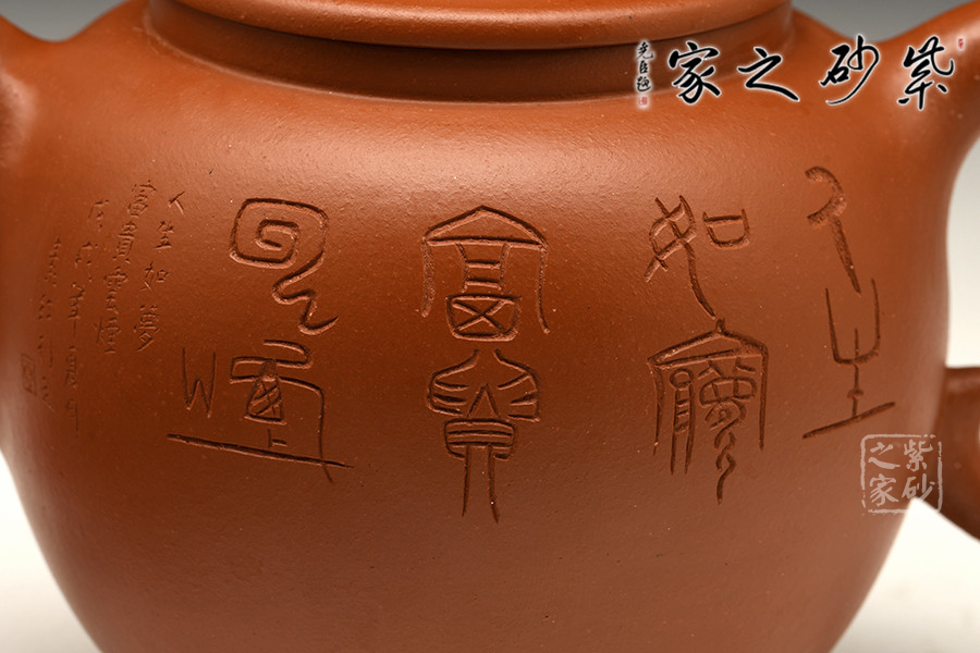 多年的學(xué)習(xí)積累,裝飾風(fēng)格自成體系,創(chuàng)作了系列化裝飾作品,成為全方面將中國文字學(xué)和傳統(tǒng)文化融于紫砂藝術(shù)的第一人。相較于紫砂藝術(shù)中常用文字,夏素紅老師所用文字裝飾效果更有唯一性和獨(dú)特性。中國稀有、失傳文字學(xué)的使用彰顯其作品有強(qiáng)烈的個(gè)人風(fēng)格,亦是復(fù)古風(fēng)的代表性佳器。