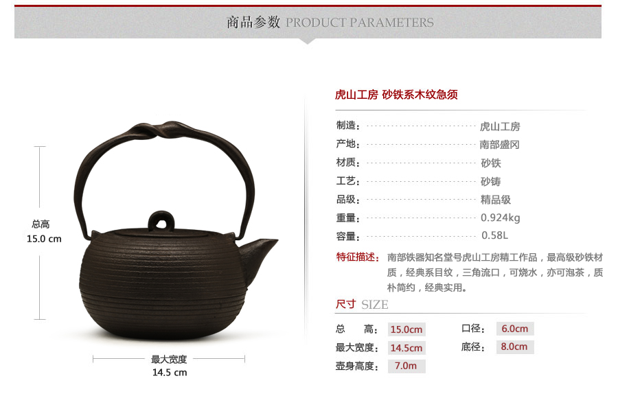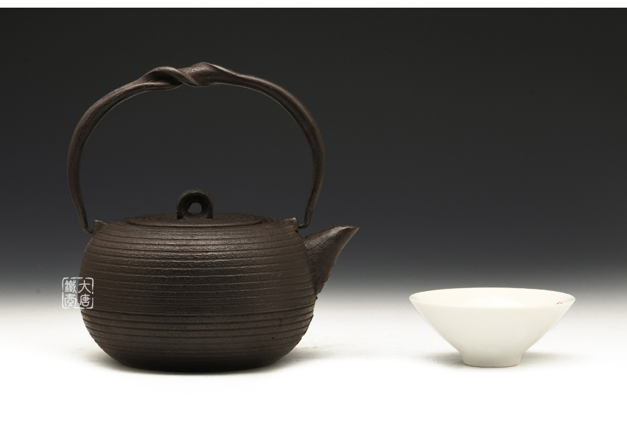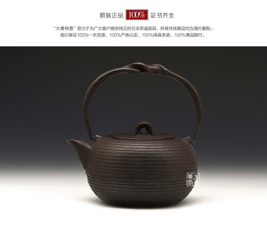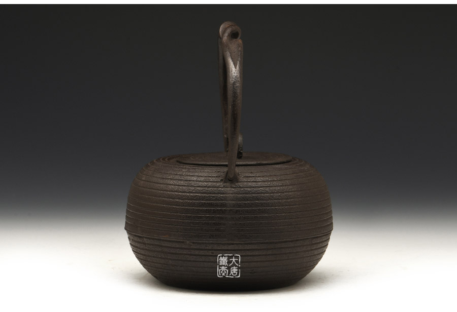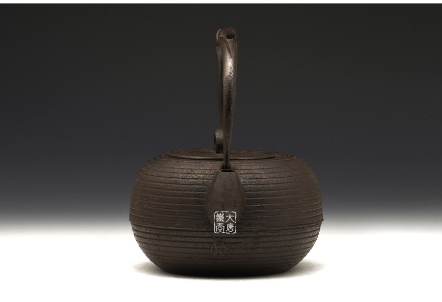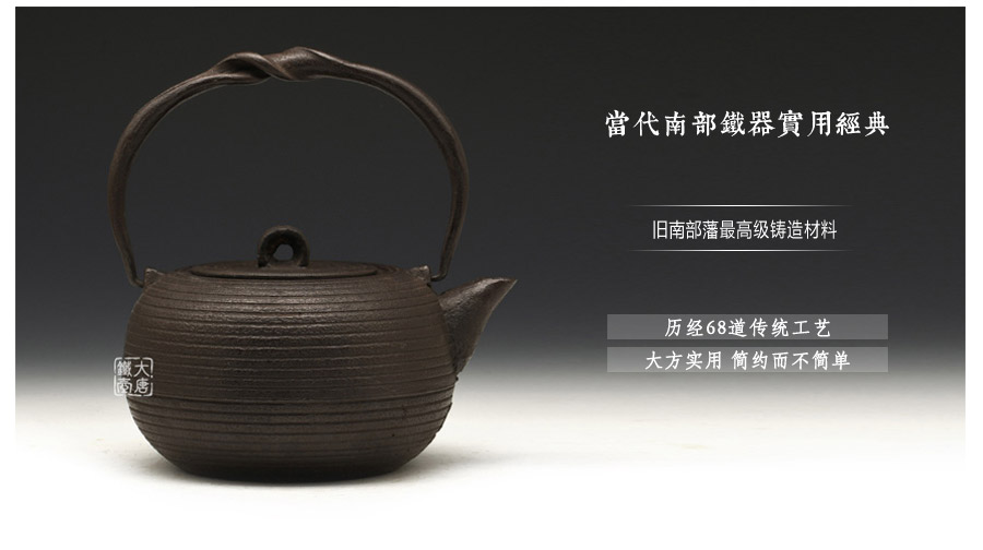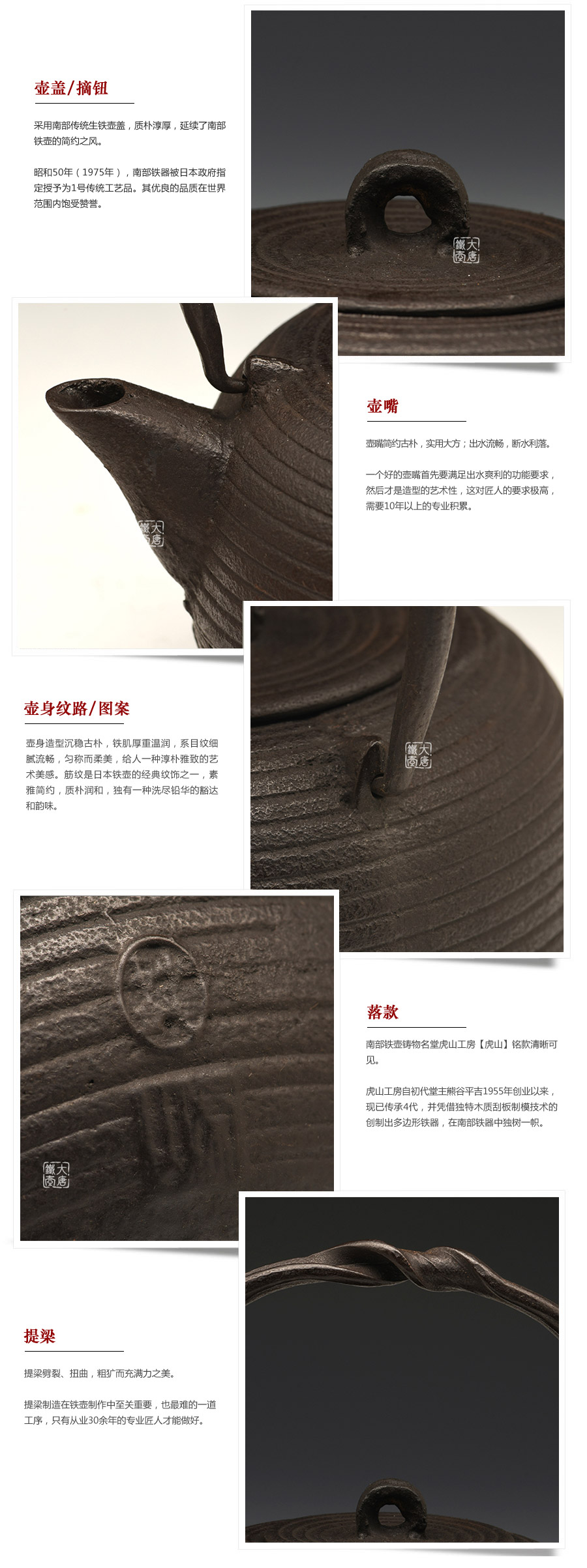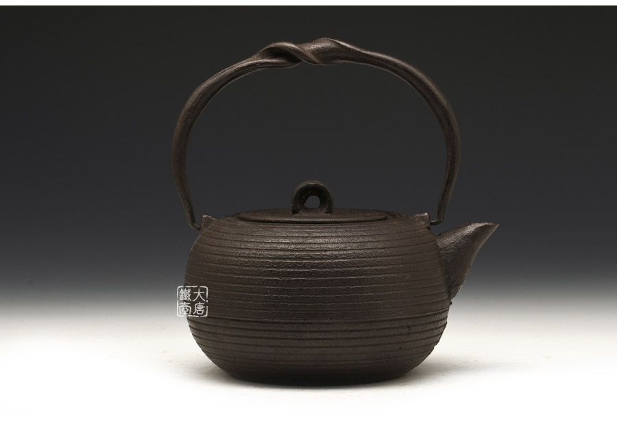 南部鐵器知名堂號虎山工房精工作品,最高級砂鐵材質,經典系目紋,三角流口,可燒水,亦可泡茶,質樸簡約,經典實用。