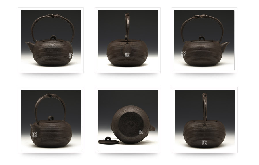 虎山工房創立于1955年,位于盛岡市手作村,是日本南部鐵器中的重要代表。”虎山”之名源于初代釜師熊谷平吉的出生地是以前南部藩飼養老虎的地方,故取“虎山”作為工房的名字。熊谷平吉擅長印刻湯釜和鐵瓶上的圖案,制作的鐵器帶有濃厚的藝術氣息,被視為鐵和火融合于一身的茶道藝術品。虎山工房制作的鐵瓶,主要以砂模澆鑄的方法為主,但是改進了木質刮板的制模技術,從而得以制作出多邊形的鐵器,在南部鐵器中獨樹一幟。