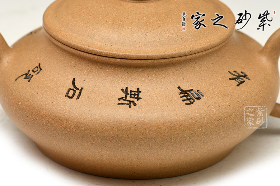 通體裝飾: 裝飾: 詞刻 裝飾者:許瑛 裝飾內(nèi)容: “有扁斯石,砭我之渴” 壺底“不可牛飲”