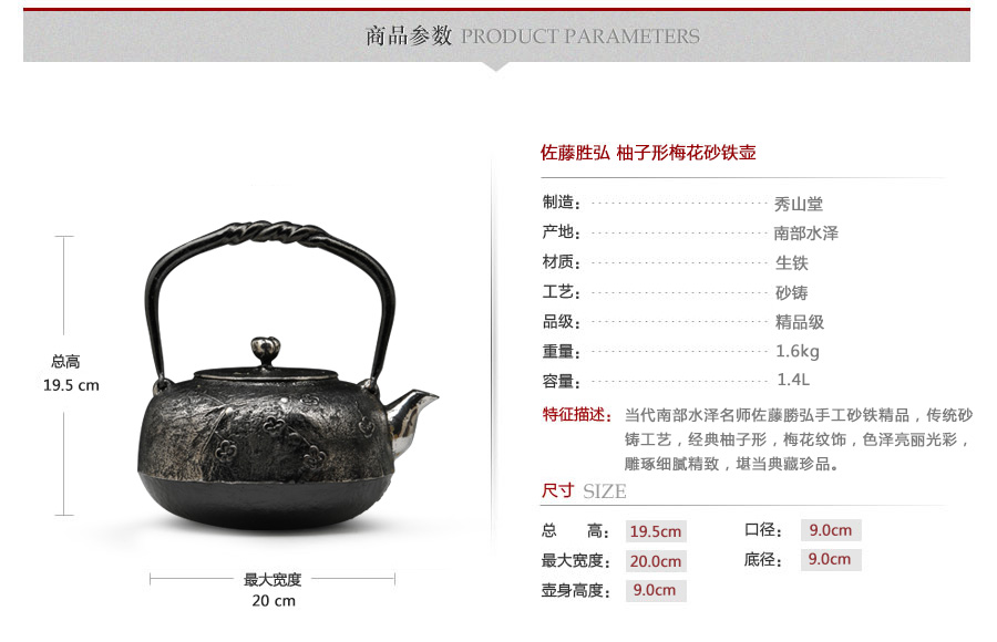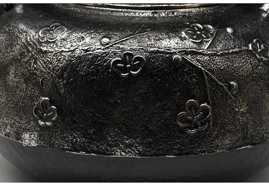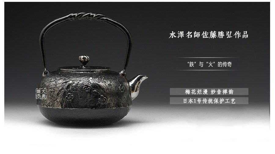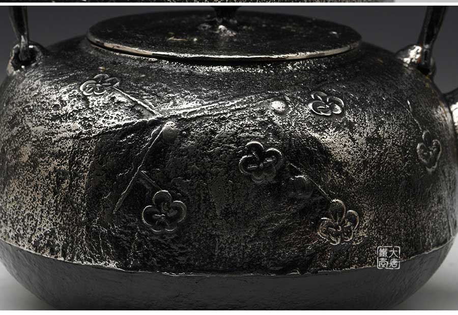 當(dāng)代南部水澤名師佐藤勝弘手工砂鐵精品,傳統(tǒng)砂鑄工藝,經(jīng)典柚子形,梅花紋飾,色澤亮麗光彩,雕琢細(xì)膩精致,堪當(dāng)?shù)洳卣淦贰?/p>