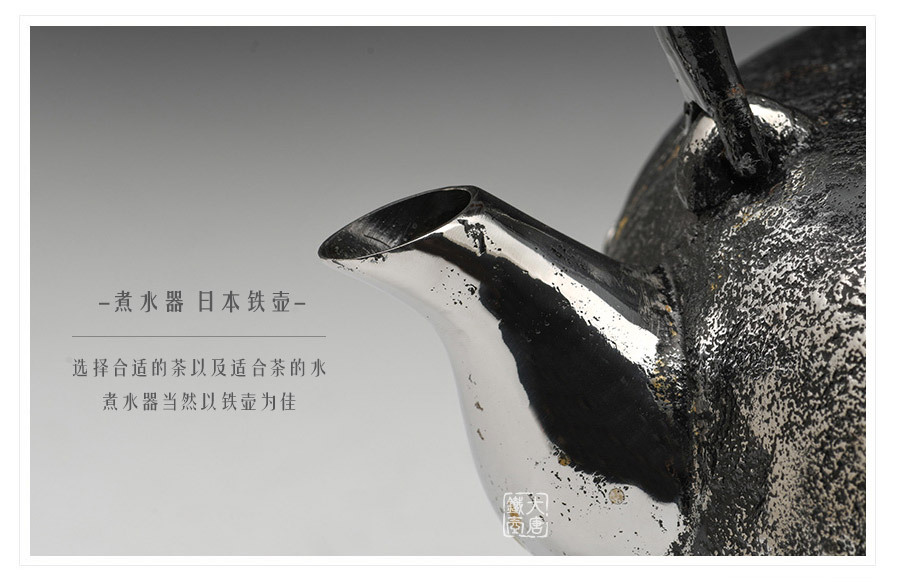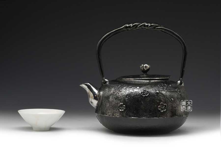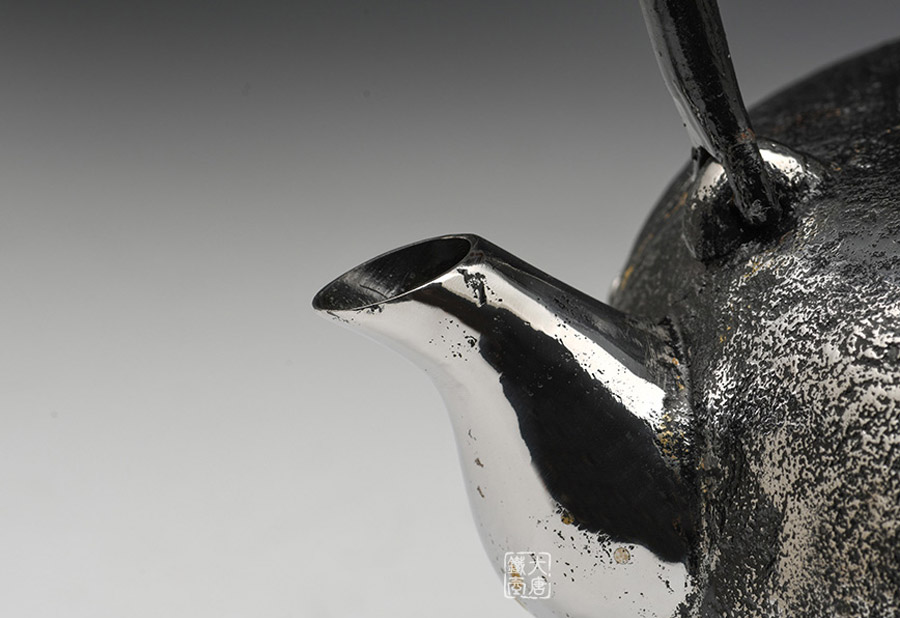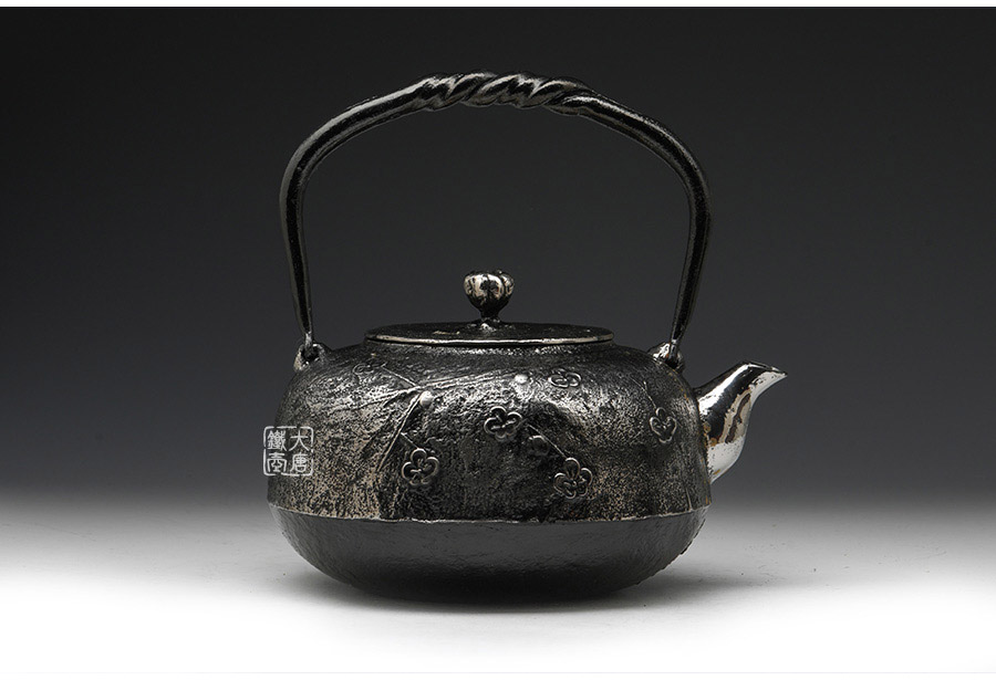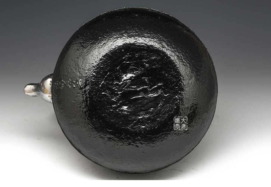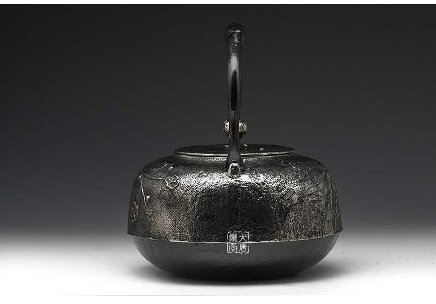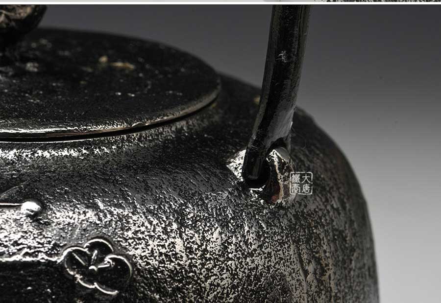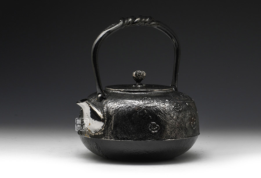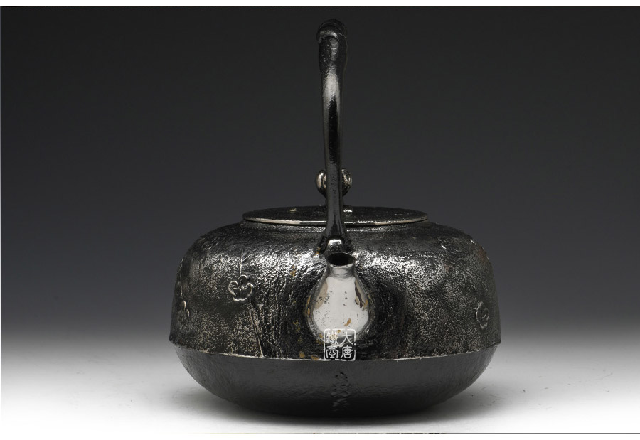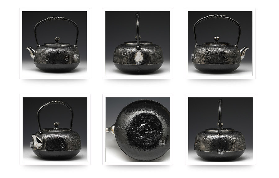 南部是鐵瓶的發(fā)祥地,御釜屋三代仁左衛(wèi)門將“手取釜”改造成鐵瓶,并固定了這種形式。所以從南部鐵瓶中可以明顯地看到茶釜的樣子。南部鐵器的追求古奧深沉的特點,大多以黑色來裝飾鐵瓶的表面,以期達(dá)成如長期受炭火熏燎的樣子。