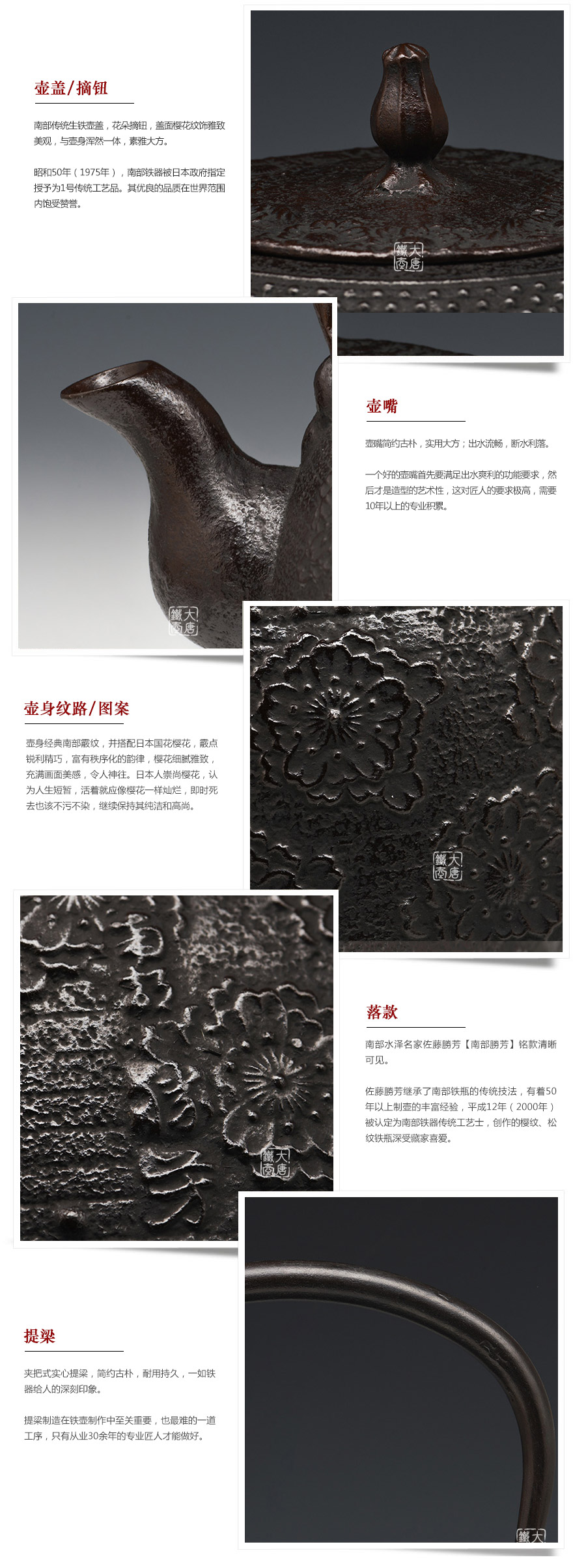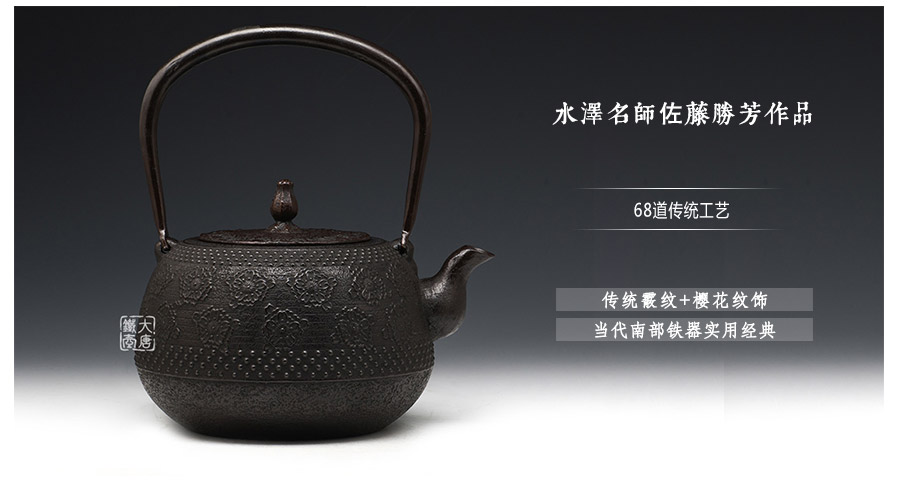 當(dāng)代日本水澤地區(qū)名家釜師佐藤勝芳創(chuàng)立的工房,繼承了南部鐵瓶的傳統(tǒng)鑄造技法,尤其擅長(zhǎng)櫻花紋飾鐵壺的制作,作品古樸雅致,大方美觀,深受鐵壺愛好者的喜愛。