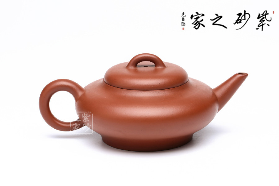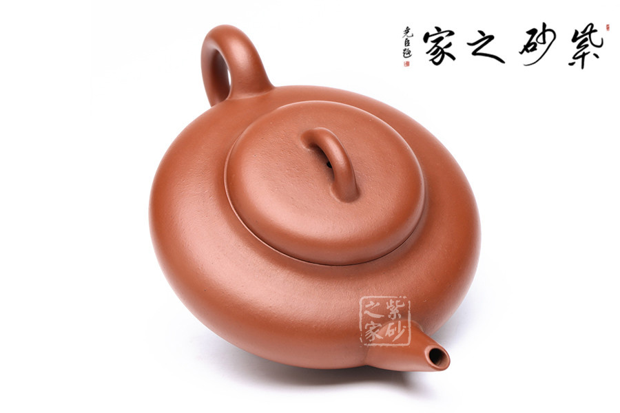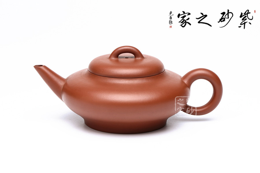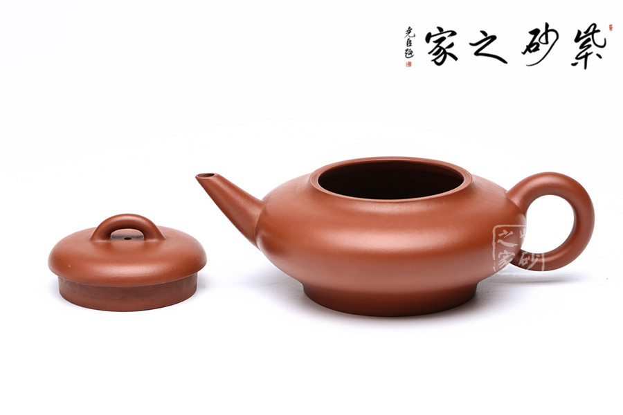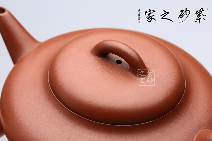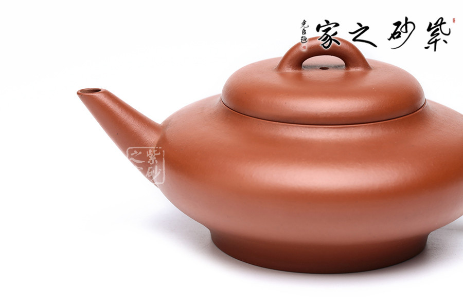 這款大水平壺,造型精妙,簡潔洗練,朱泥制作,色澤紅潤,簡雅有神。