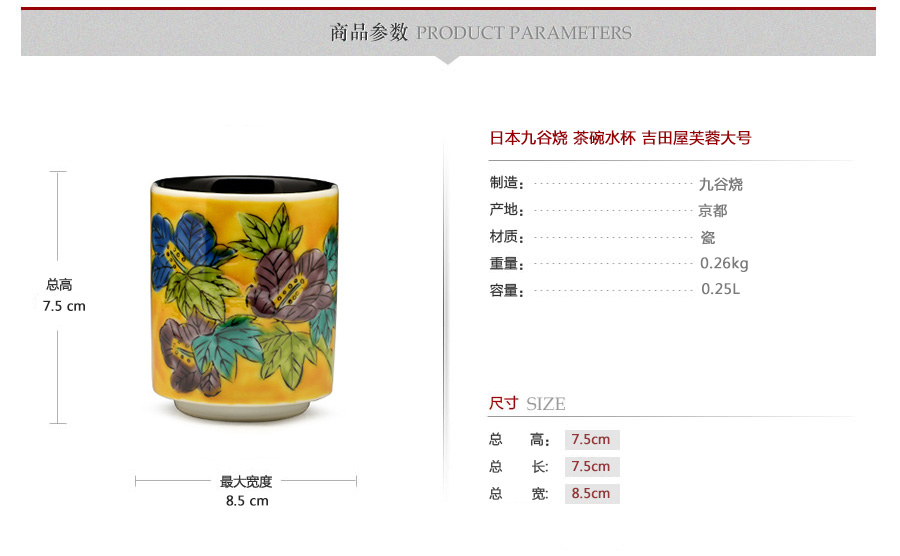 產地:京都 堂口:九谷燒 材質:瓷 工藝:純手工 尺寸:7.5*7.5*8.5cm 重量:260g