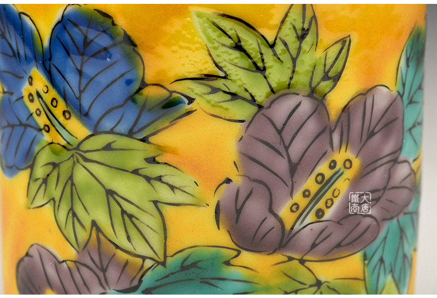 “九谷燒”取名于“九谷村”,并且這個時期制造的陶瓷被稱為“古九谷”。它是繼承自傳統的修養的正規武士們藩、里的畫匠們、還有就是后藤才次郎從長崎領來的朝鮮以及明朝的技術者、和有田的陶瓷工人們等同心協力制陶的智慧精華于一身。“九谷燒”的獨特風格,是它的繪畫線條豪放、明快,顏色有綠、黃、紅、紫、藏青色等五種。九谷燒經過采石、粉碎、篩籮、沉淀、成形、烘烤、素燒、繪畫、施釉、燒制、彩繪后再燒制等十幾道工序完成。古九谷燒瓷質溫潤,配色強烈,運用紅、黃、綠、紫、青等五種顏色,大膽構圖,線條自然流暢有力,形成豪放,秀麗,奢華的高品位獨特風格。