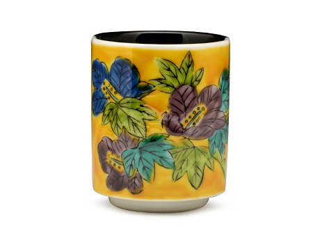 “九谷燒”取名于“九谷村”,并且這個時期制造的陶瓷被稱為“古九谷”。它是繼承自傳統的修養的正規武士們藩、里的畫匠們、還有就是后藤才次郎從長崎領來的朝鮮以及明朝的技術者、和有田的陶瓷工人們等同心協力制陶的智慧精華于一身。“九谷燒”的獨特風格,是它的繪畫線條豪放、明快,顏色有綠、黃、紅、紫、藏青色等五種。九谷燒經過采石、粉碎、篩籮、沉淀、成形、烘烤、素燒、繪畫、施釉、燒制、彩繪后再燒制等十幾道工序完成。古九谷燒瓷質溫潤,配色強烈,運用紅、黃、綠、紫、青等五種顏色,大膽構圖,線條自然流暢有力,形成豪放,秀麗,奢華的高品位獨特風格。