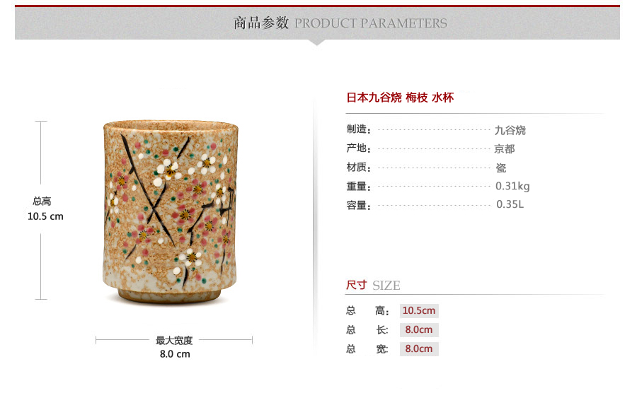 日本九谷燒 梅枝 水杯 [ 編號:70091 ]