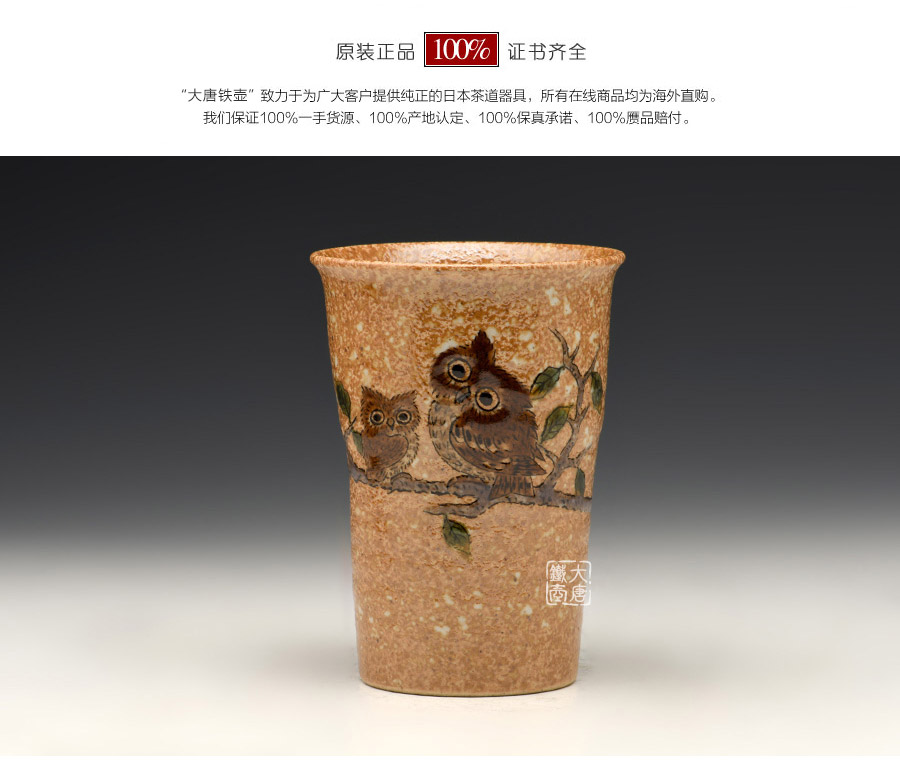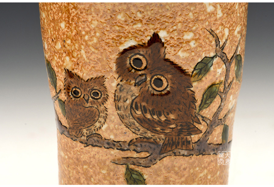 日本九谷燒 茶碗水杯 貓頭鷹 [ 編號:70093 ]