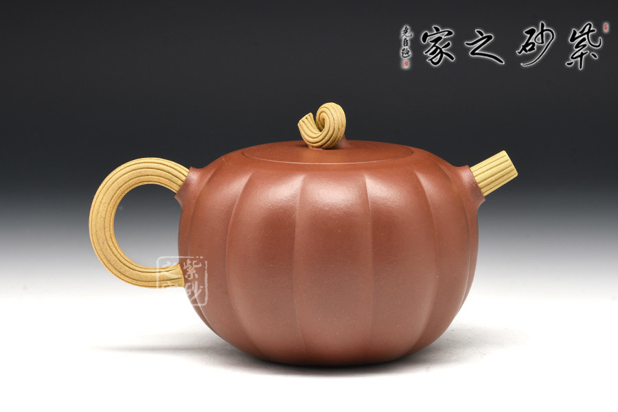 瓜棱勻稱飽滿,蓋與身上下貫通,弧線優美,和諧自然。瓜壺寓意發達興旺、生生不息。