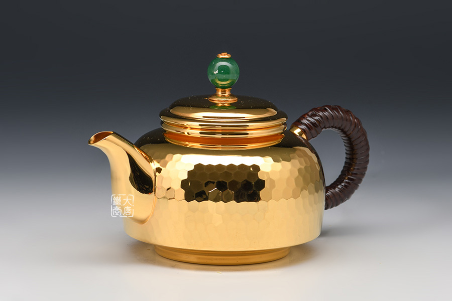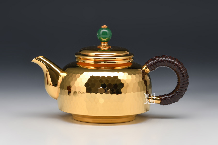 銀祥堂 釜形錘目紋純銀金彩急須 [ 編號:72315 ]