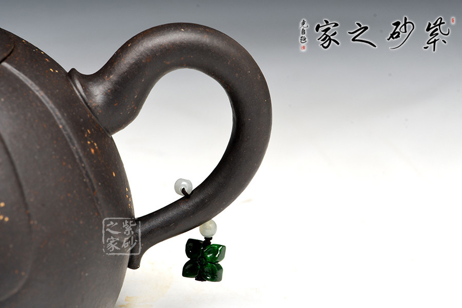 用心泡養(yǎng)的紫砂壺呈現(xiàn)出的包漿質(zhì)感就如同玉石一樣的潤,所以茶壺和玉是具有極大的相關(guān)性的。顧勤老師創(chuàng)作的珠寶系列的紫砂壺,就是希望把玉器與紫砂壺進(jìn)行完美的融合。