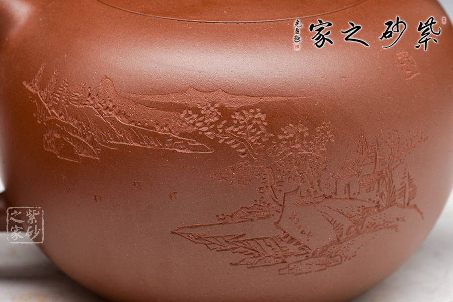B面: 裝飾: 山石村景 裝飾者:嚴(yán)志軍(子石) 裝飾內(nèi)容: 予你一隅小屋,遙望天邊遠(yuǎn)景,暢享壺中乾坤