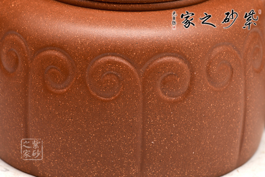 泥性:原礦因含緞泥、紅泥、紫泥等諸多共生礦,陶之后,于深沉之“橙紅色”底上,滿佈五彩斑斕的粗細(xì)、深淺之紅、黃星斑點(diǎn)。