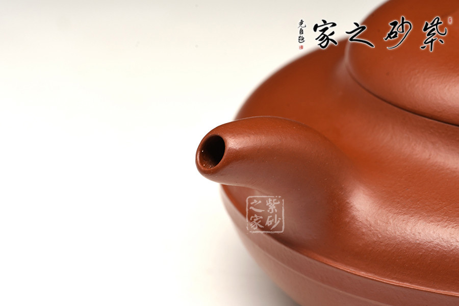 特點:質感綿密、緊實細緻,持之扎實沉重、紅潤豔麗,泥中極品,無以倫比;泥胚含少許原礦顆粒,沖淋熱水后色變極大,呈紅中帶紫,養壺易現“包漿”之美。