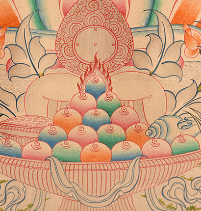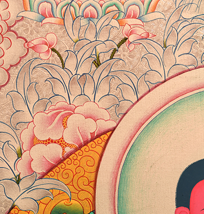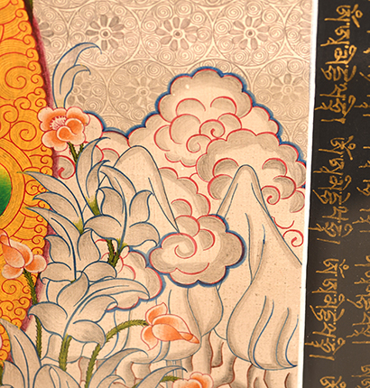 | 唐卡是歷史的瑰寶,現已被例入國家非物質文化遺產名錄,得到了高度的重視和保護。同時由于顏料的珍稀、繪制周期長、工藝復雜大大增強了其珍藏價值。一幅好的作品可遇不可求,近年來唐卡已成為收藏界炙手可熱的藏品。 | 唐卡的形式便于攜帶,其內容體現了藏傳佛教的莊重、神圣、華貴,被稱為“移動的佛像”。同時也是修行者積累善業,追尋心靈的平靜與安寧的一個過程。 | 唐卡的內容包羅萬象,它以圖像的方式承載著藏族文化精髓,是藏族智慧的結晶,廣泛傳播了藏地的文化、歷史和宗教理論。 | 唐卡絢麗的色彩、流暢的線條、嚴謹的結構,都充滿著濃郁的高原和游牧民族風情,無疑是難得的藝術珍品。值得一提的是唐卡繪制顏料全部為天然礦物顏料,畫面效果艷麗,可以保存千年而不變色。 |