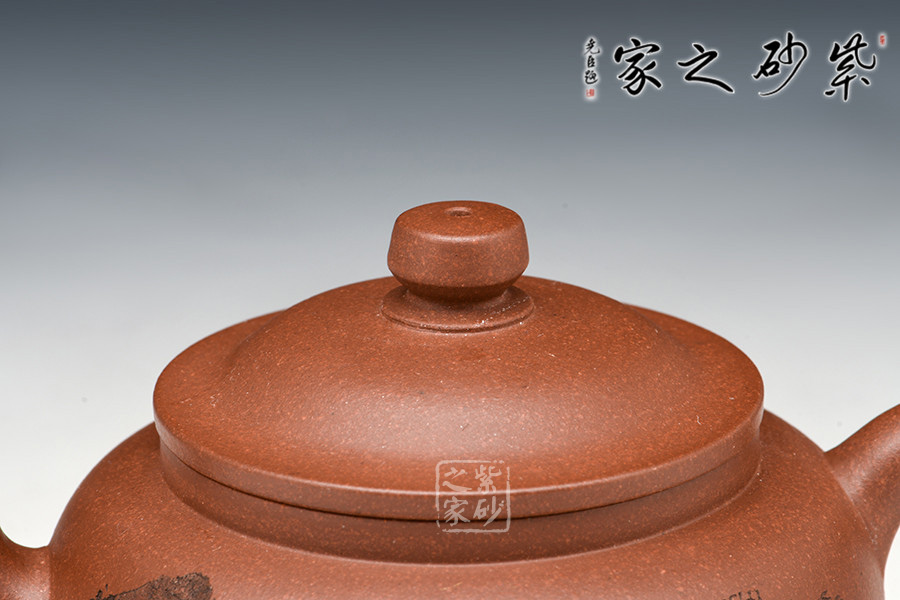 此器形貌優(yōu)雅,底槽青質(zhì)色溫潤沉穩(wěn),胎質(zhì)細(xì)膩而緊結(jié)。壺蓋平壓于壺口,為笠帽式,纖巧可愛,扁圓柱形鈕,摘拿適手。