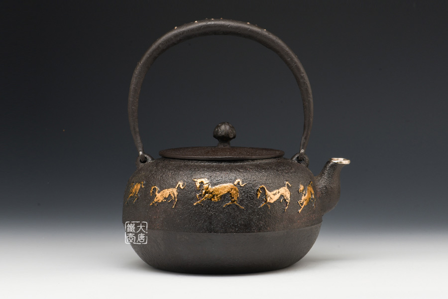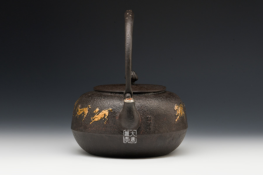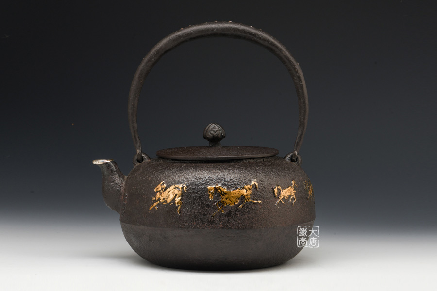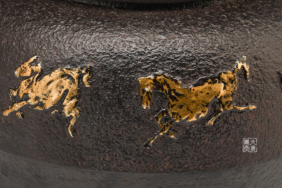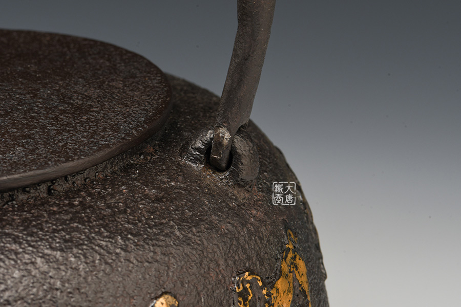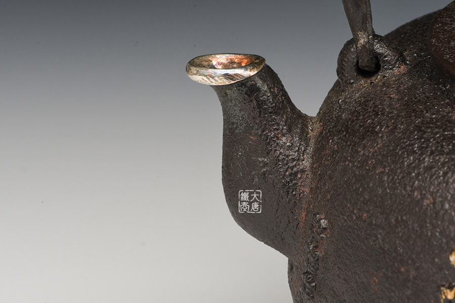 荒井工房的鐵瓶除了在鑄造工藝上有嚴(yán)格的規(guī)范和體系,在鐵瓶裝飾技術(shù)上也頗有建樹。除了傳統(tǒng)的印刻技術(shù)外,荒井工房還掌握了非常出色的金銀鑲嵌技藝,尤其以大片的鏨刻銀片最為出眾,這在山形當(dāng)?shù)靥每谥歇?dú)樹一幟。