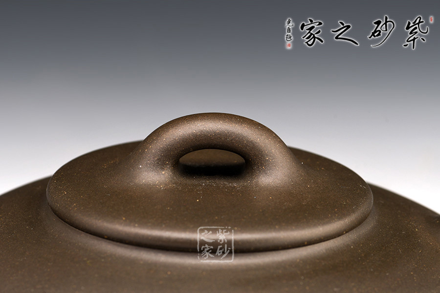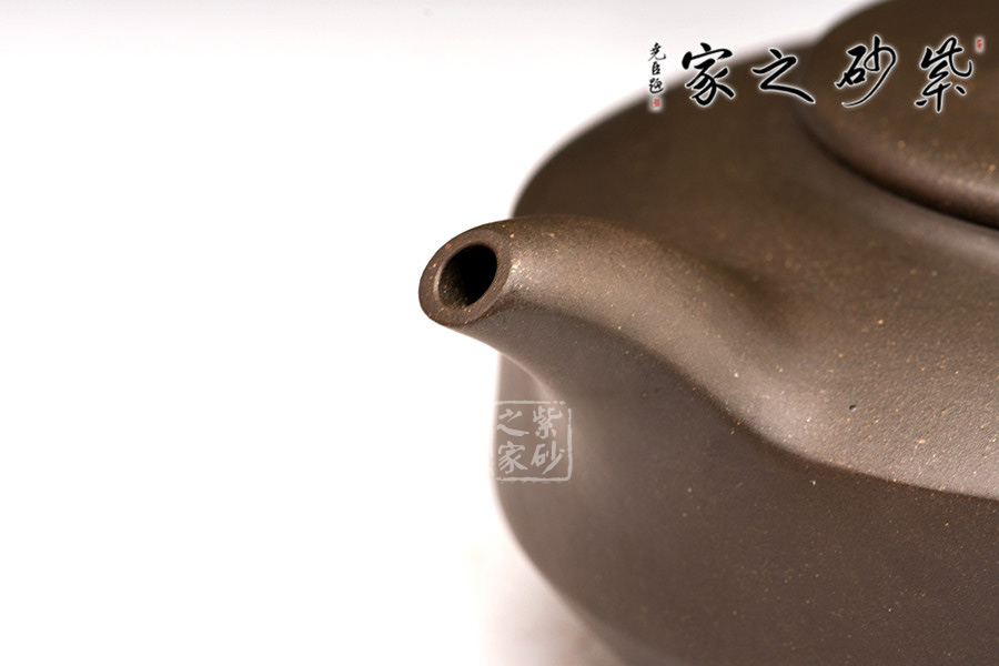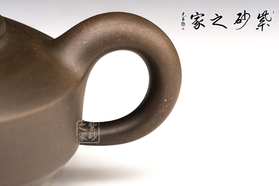 此壺流把與肩連成一線,整體線面明暢、功法講究、玉潤(rùn)飽滿、一氣呵成。嘴、把、橋鈕線條清晰,斜肩略下溜,直腹下收與肩同,微細(xì)中見神韻,形制端莊大方。